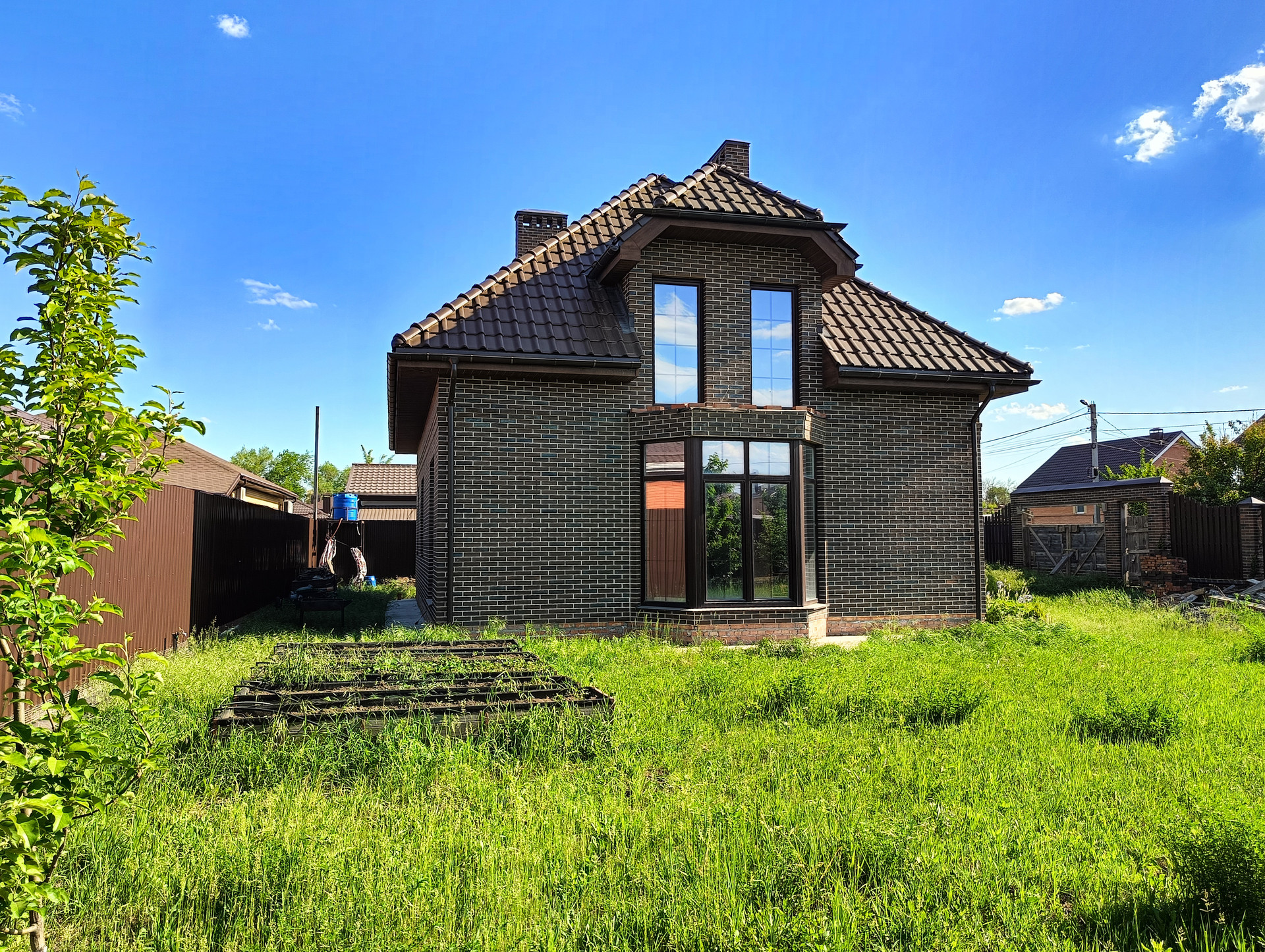 В Продаже прекрасный двухэтажный кирпичный дом, на участке правильной формы.