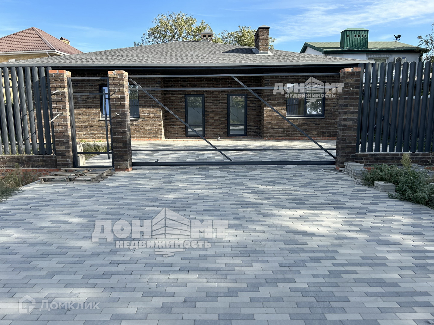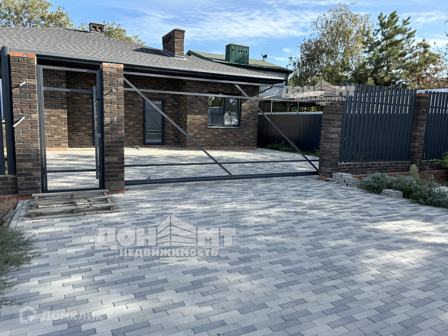 —кирпичный забор по фасаду, с установленными воротами и калиткой