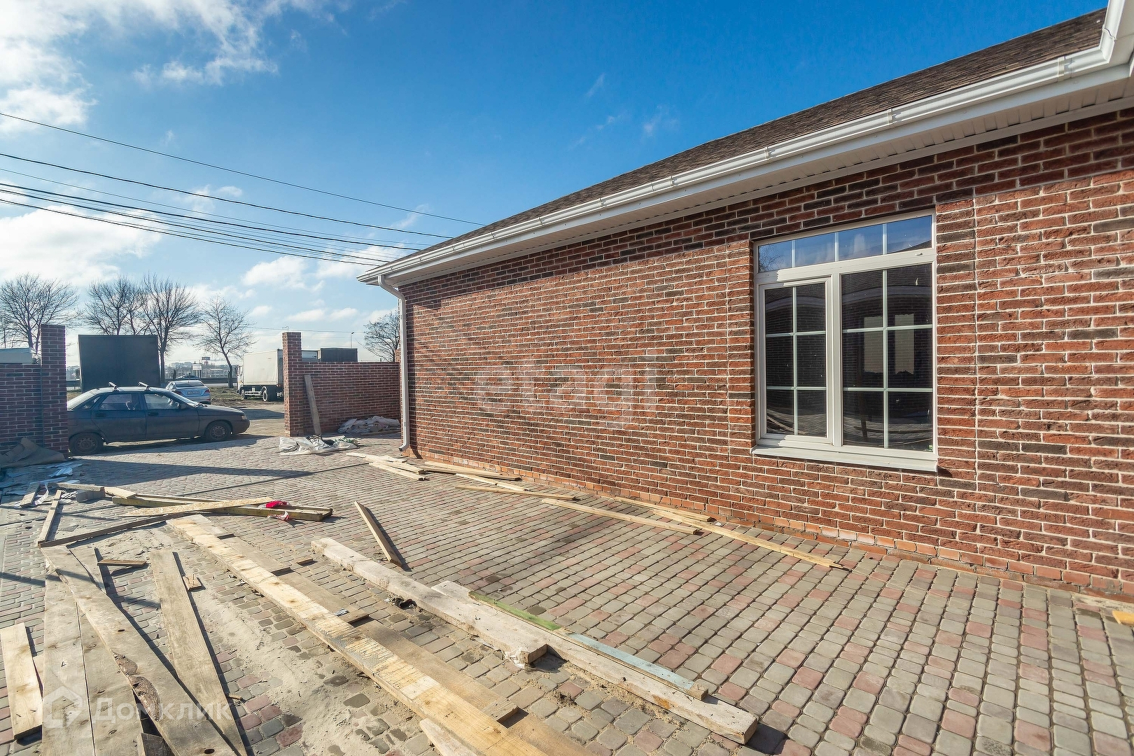 армированный по Госту. Двор выложен тротуарной плиткой. Имеется ограждение участка и ворота.