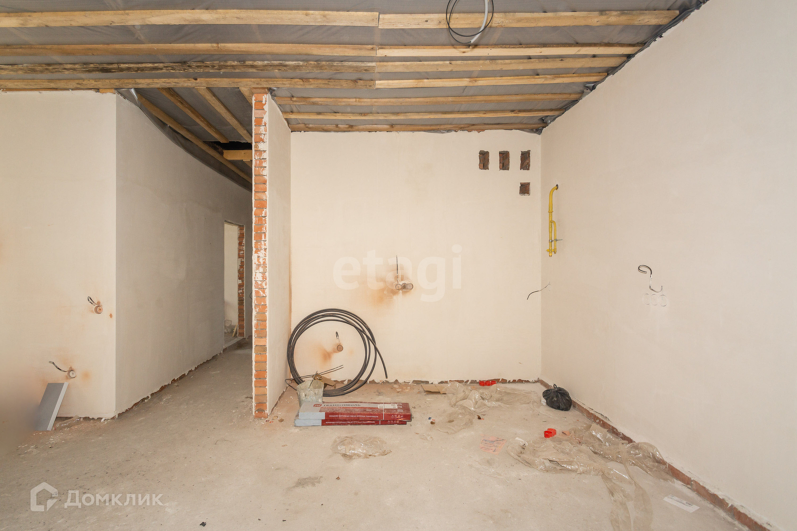В доме: теплый пол по всему дому, двухконтурный газовый котел , водоснабжение , электрика, стяжка, штукатурка.