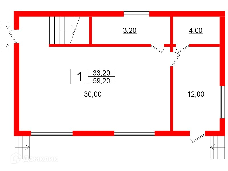 Общая площадь 59.2 м2
