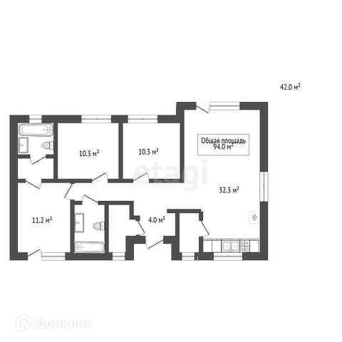 Общая площадь 93 м2