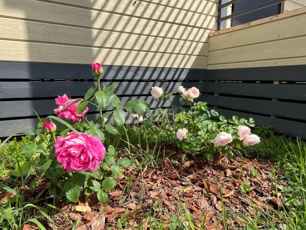 Участок ровный и ухоженный, летом радует глаз яркими цветами и вкусными ягодами – ежевикой и крыжовником, а также яблоней, которая подарит вам сладкие плоды.