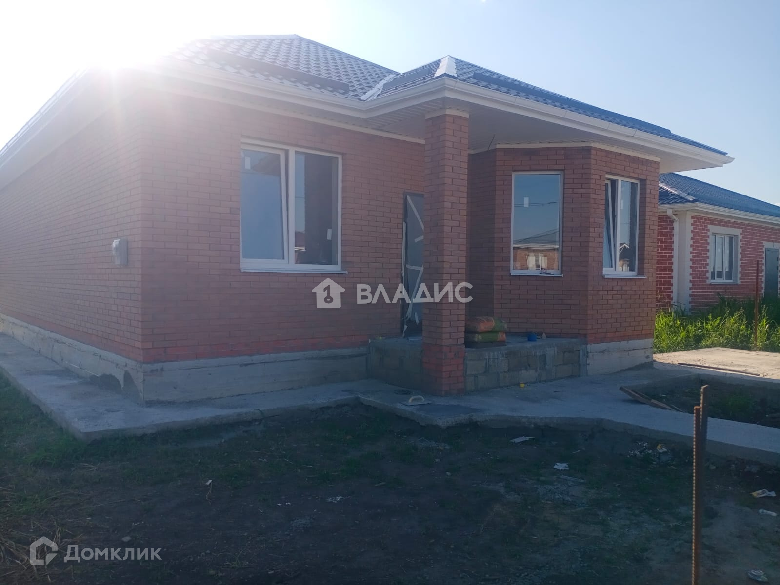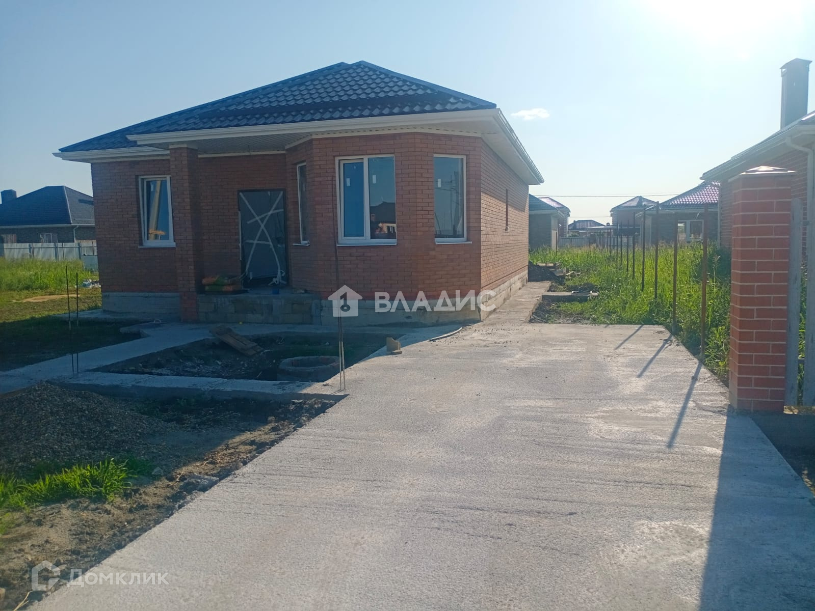 Двор заезд бетон плюс отмостка, забор кирпичный со вставками  из штакетника, ворота откатные