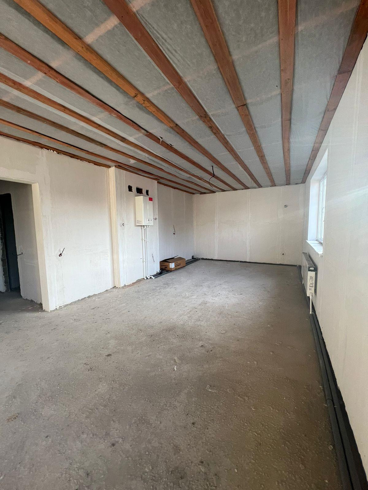 Предчистовая отделка, установлен газовый котел, разводка воды, канализации и электрики. Вода центральная, артезианская. Планируется подведение газа.