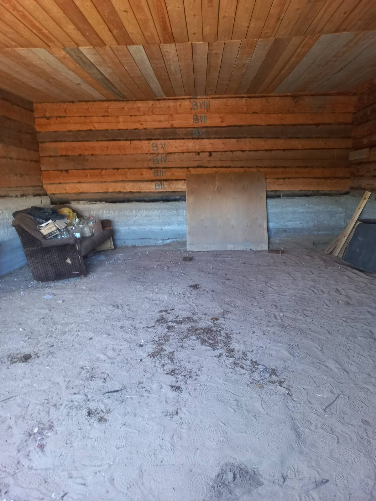 Характеристика: Дом 214,5 кв.м. кругляк, высокий надежный фундамент. 2015г. постройка. Баня- 3/5, Гараж для двух машин.В доме имеется погреб. Нет света и воды,у соседей скважина 30 метров глубиной до воды .