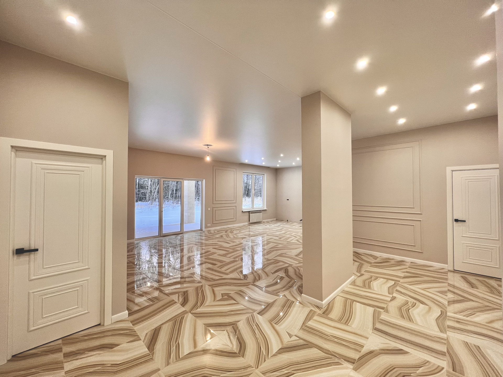 Внутренняя отделка дома исполнена по индивидуальному дизайнерскому проекту.