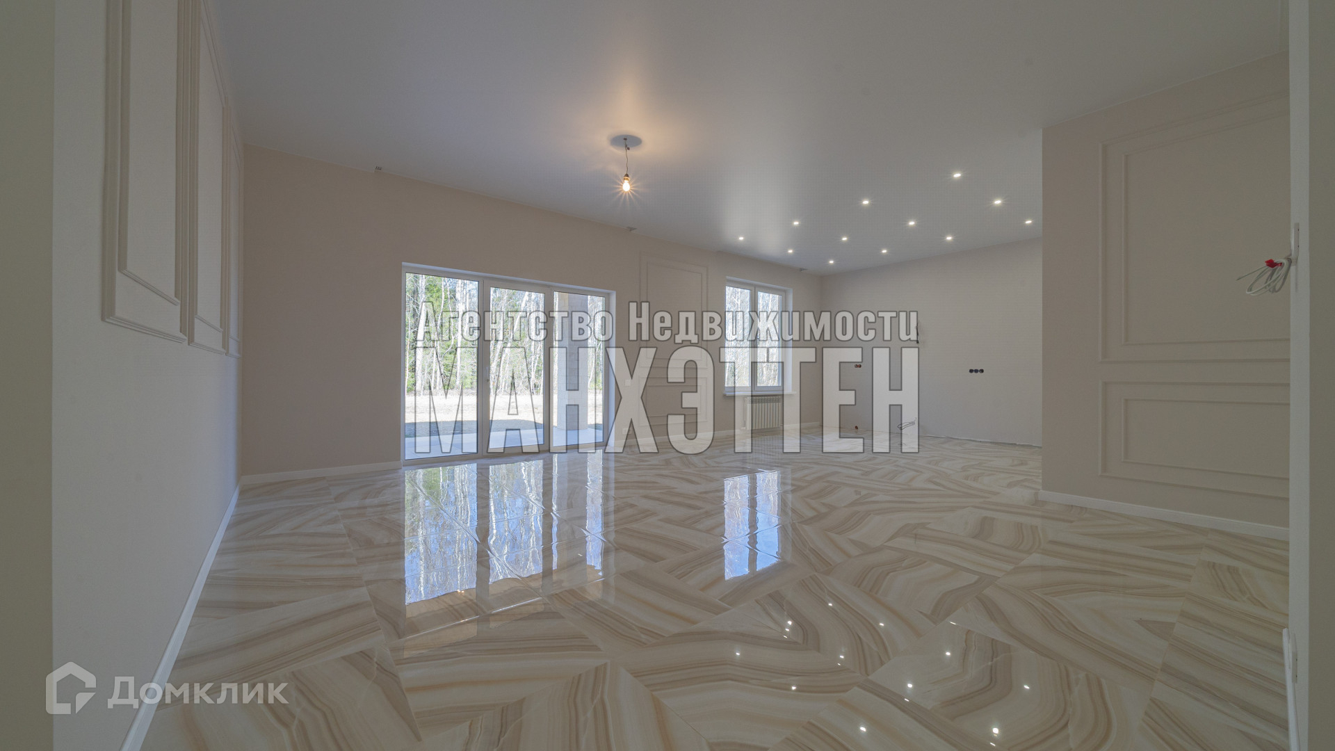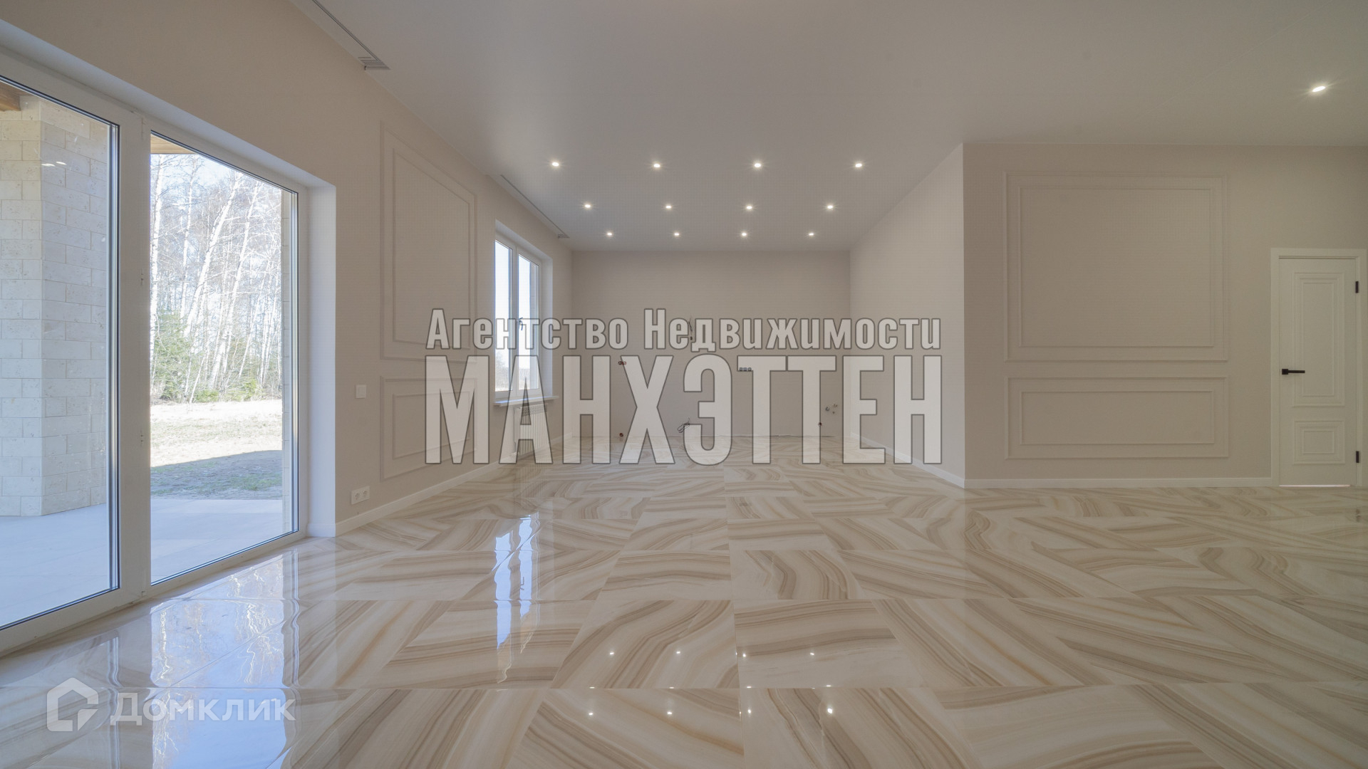 Кухня-гостиная с панорамными окнами с выходом на веранду и видом на лес: 65 кв.м.;