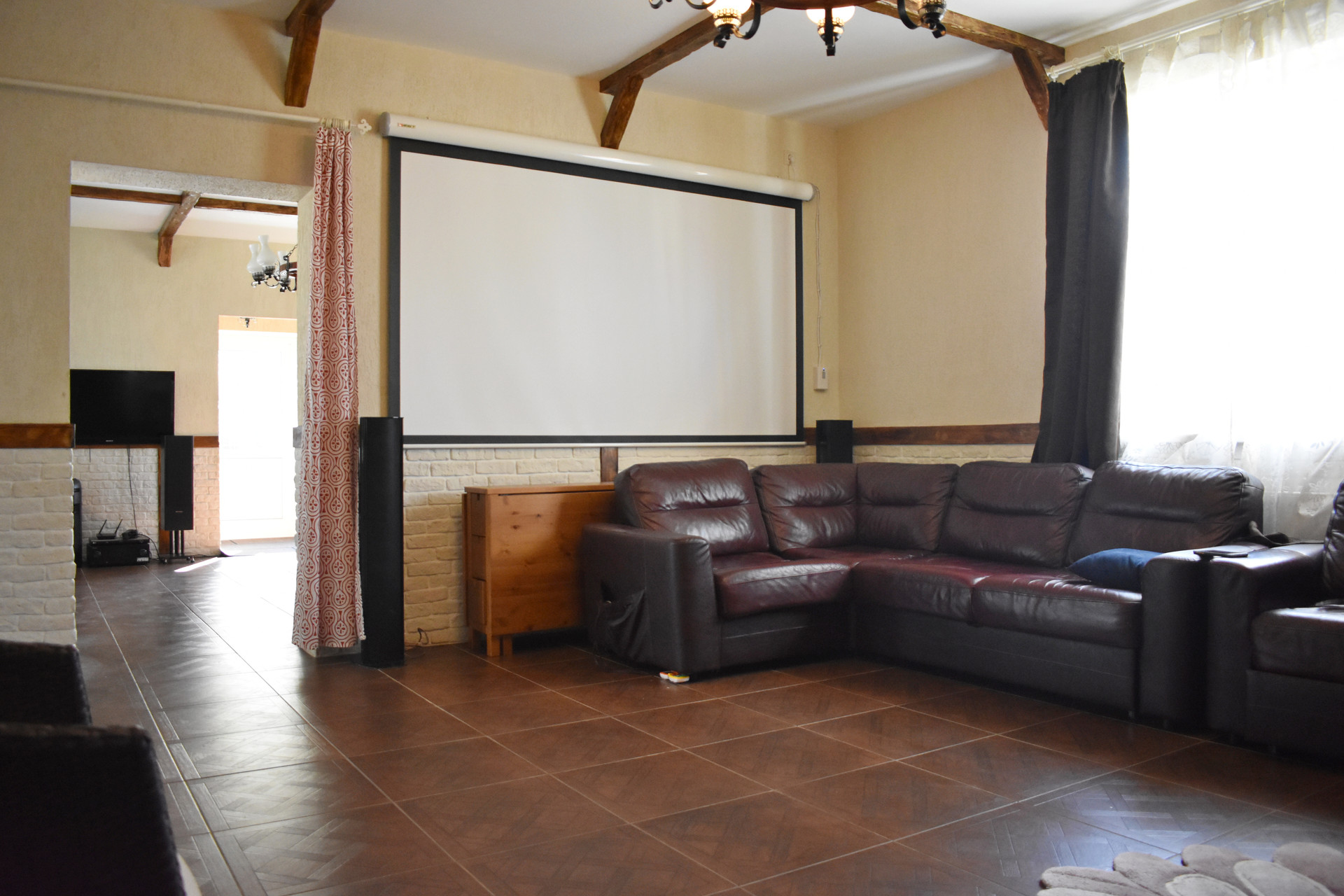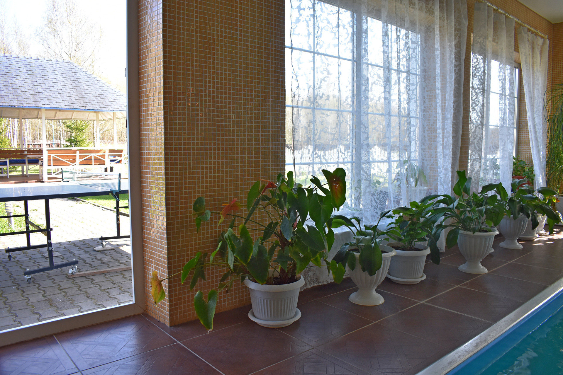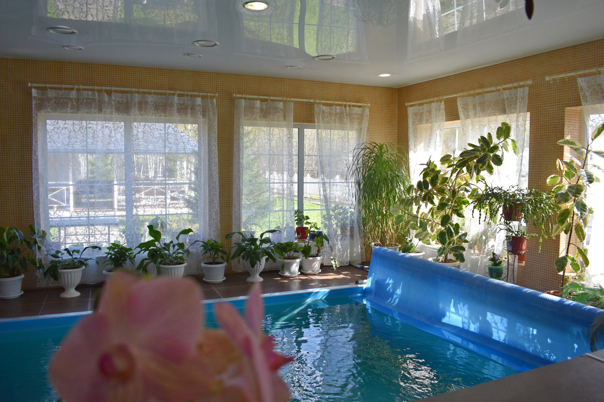1-й этаж: кухня, зал, бассейн, сауна, c\у.
