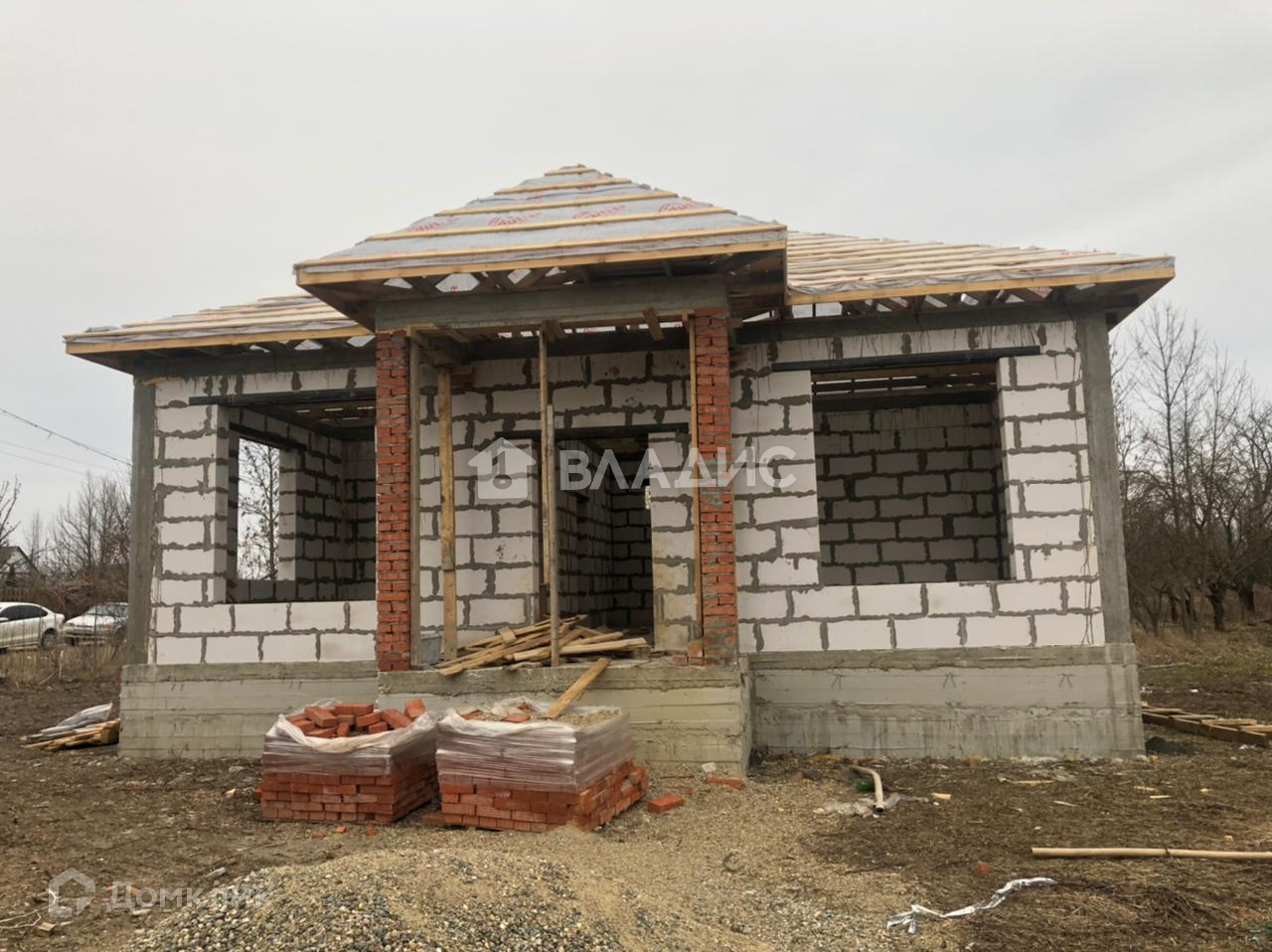 Продам дом на этапе строительства. Дом расположен в днт. Имени Хуаде, ул. Весенняя.