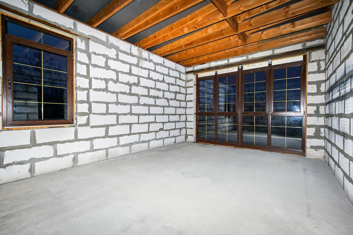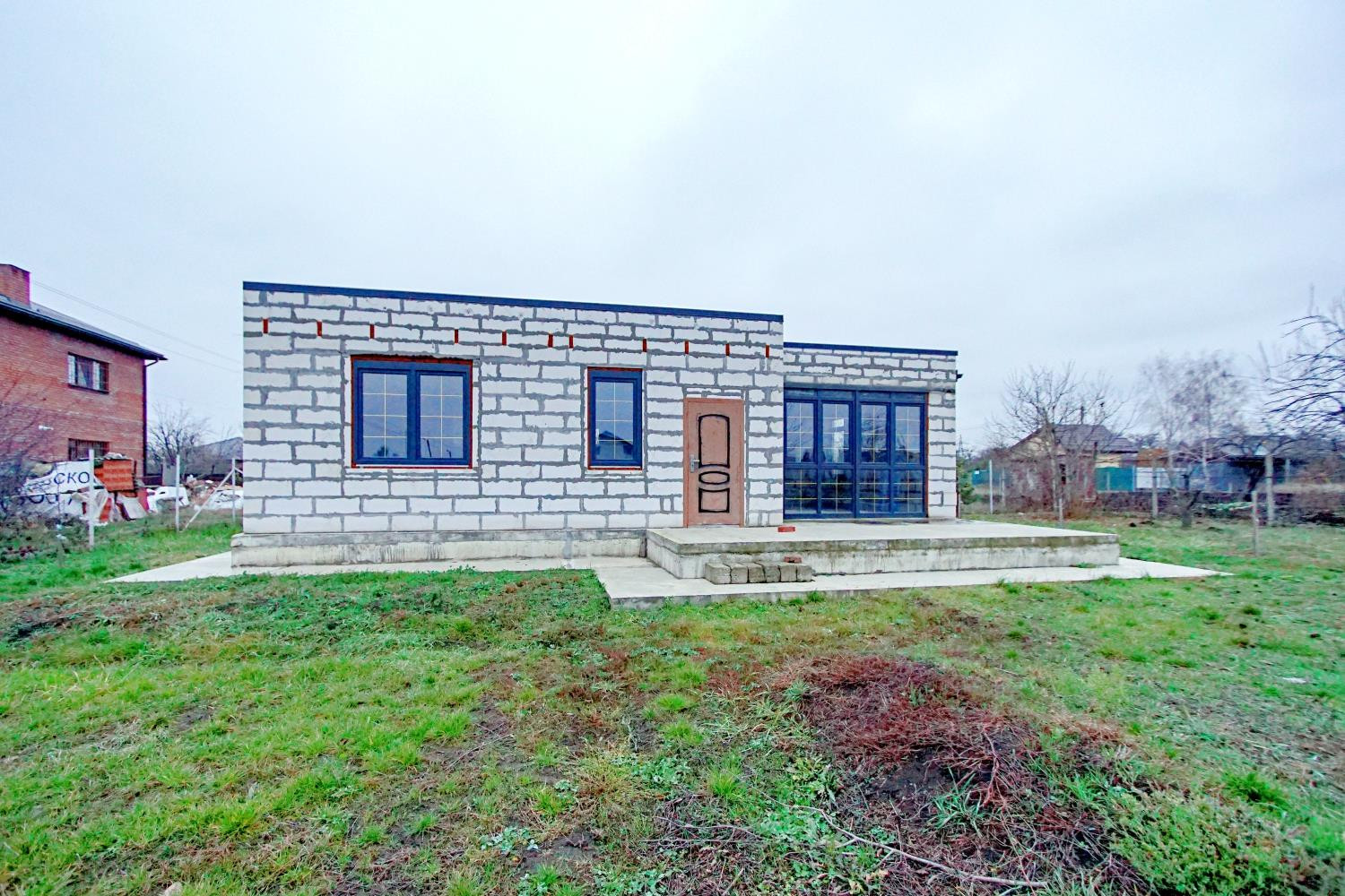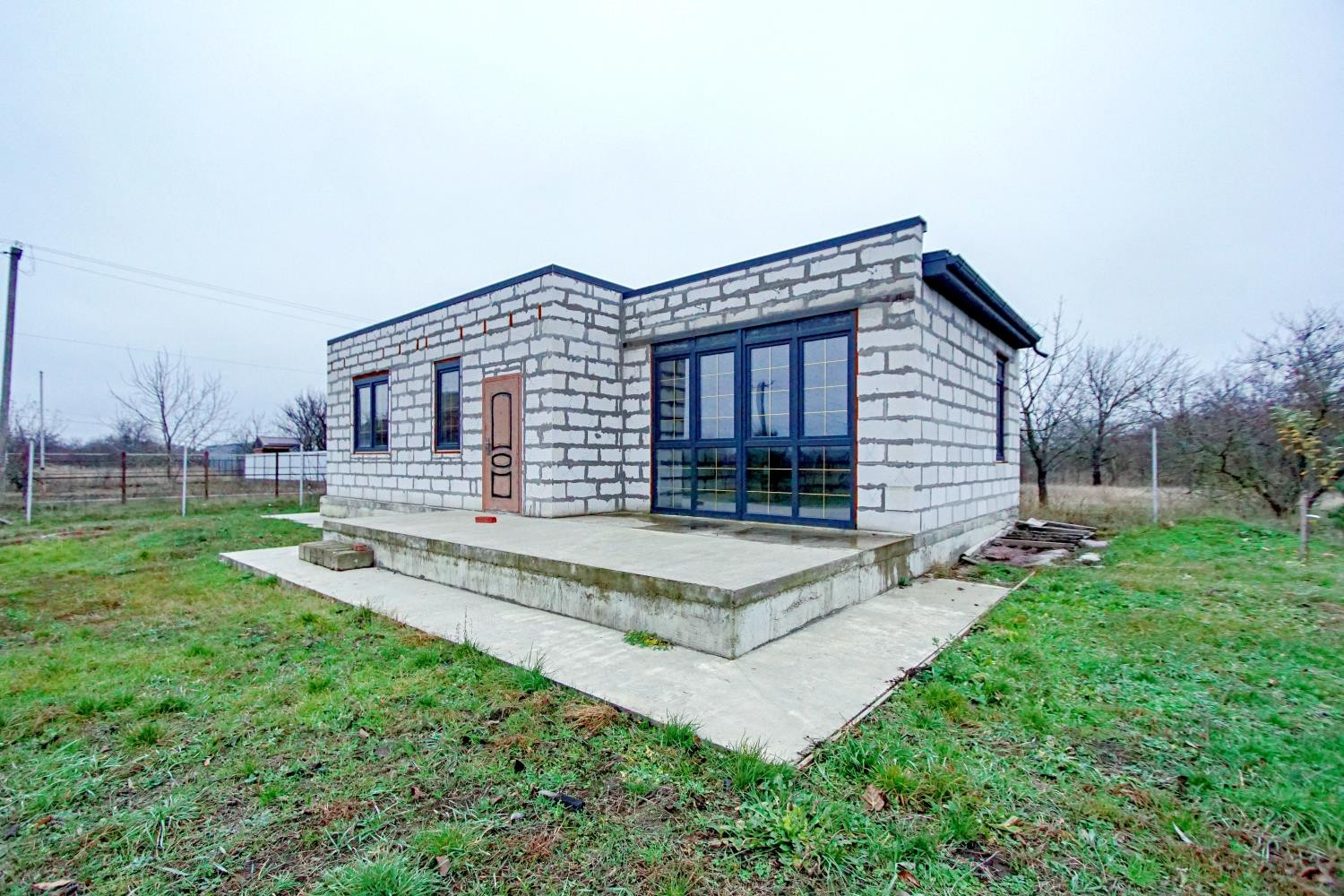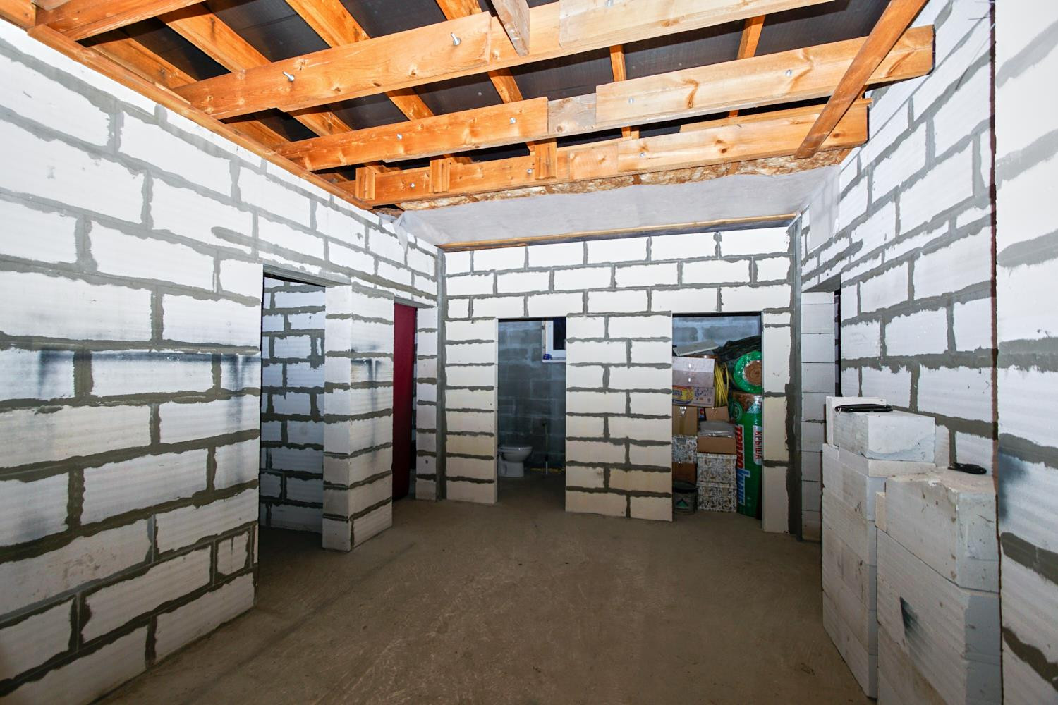 Строительство велось по строительным нормам. Дом плюс терраса. Терраса выполнена из бетона на ленточном фундаменте. Планировка три комнаты и просторный холл.