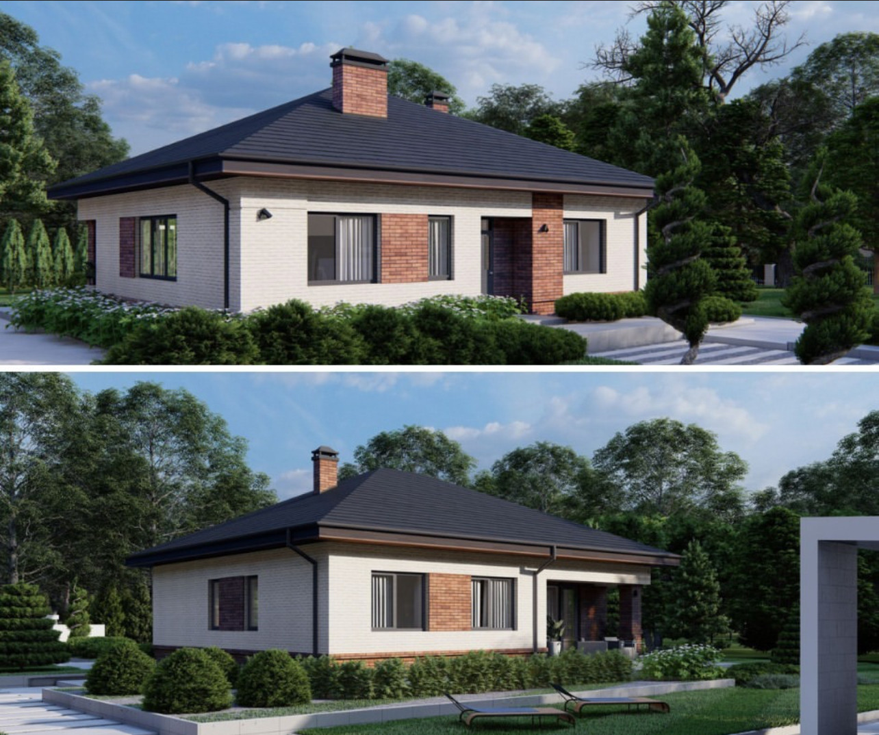 Лентoчный фундамент 80cм, монолитнaя плитa 20cм, киpпичныe стены высотой 3 метра. По периметру установлен фундамент под забор.