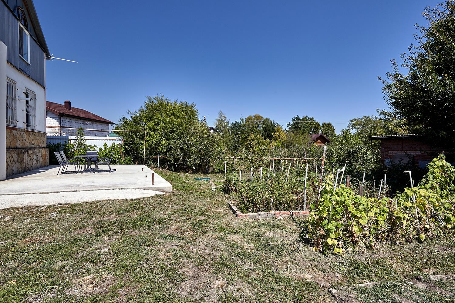 Коммуникации: газ, вода, электричество, септик. Все удобства в доме. Большой двор, зона барбекю. Двор забетонирован. На участке много плодовых деревьев, виноградники, клубничные грядки, кусты малины. Дом полностью готов для проживания, очень теплый и уютный.