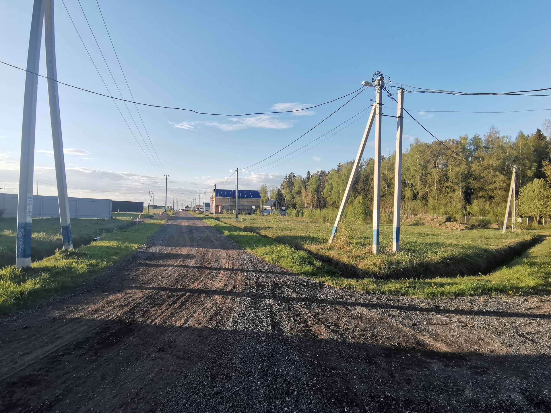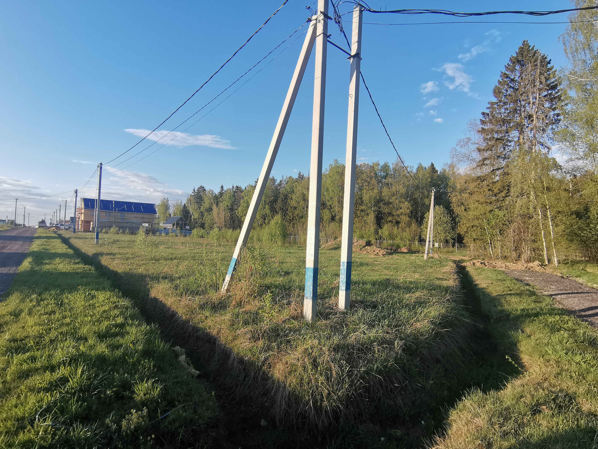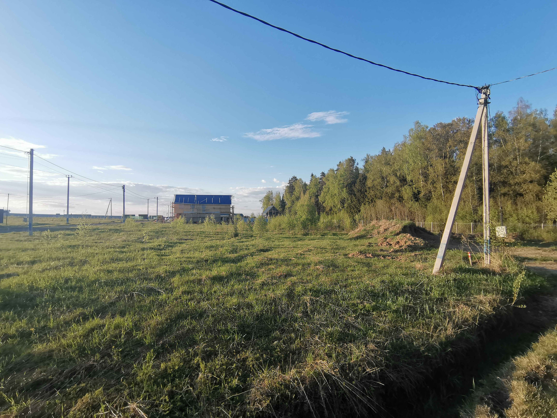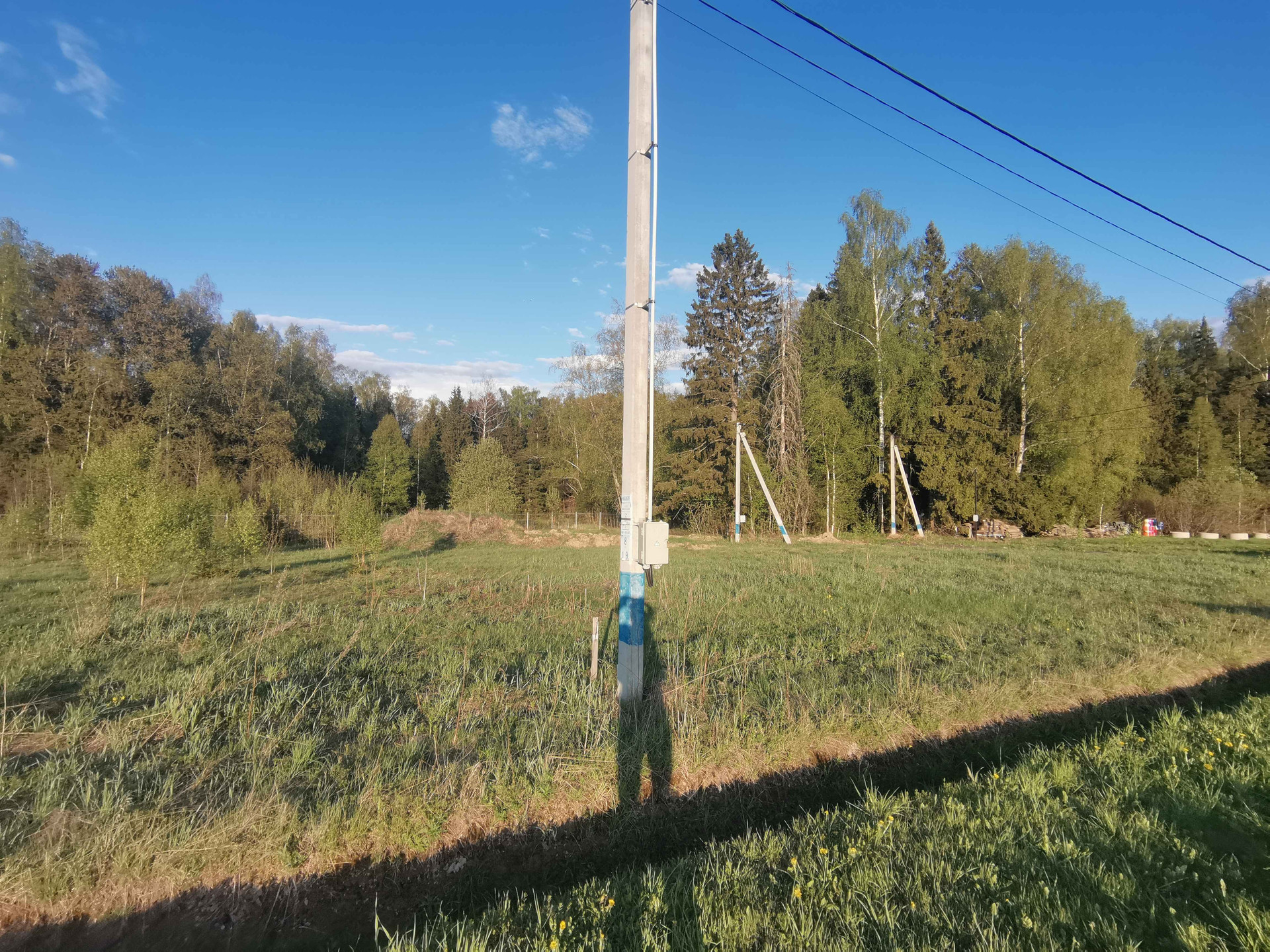 На участок заведено электричество 15кВт (прямой договор Россети). Месячный взнос на обслуживание инфраструктуры поселка 1500р.