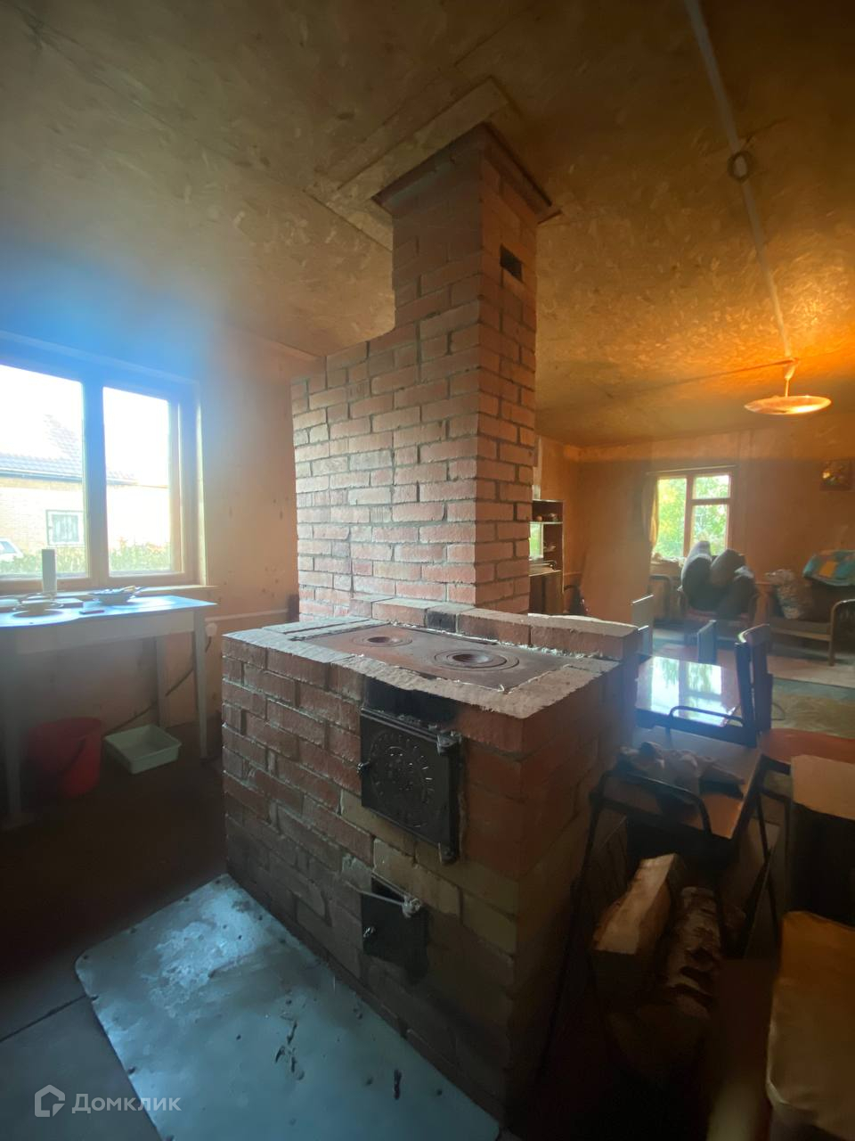 Дом в очень хорошем состоянии, но требует доработки, каркасный, щитовой, фундамент ленточный, на первом этаже большая кухня-гостиная, хорошая большая печь с варочной панелью, которая отлично прогревает весь дом, на втором этаже две комнаты. Окна двойные, деревянные - экологически чистые. Летний водопровод с технической водой, вода заведена в дом.