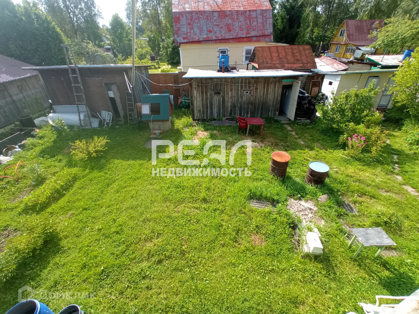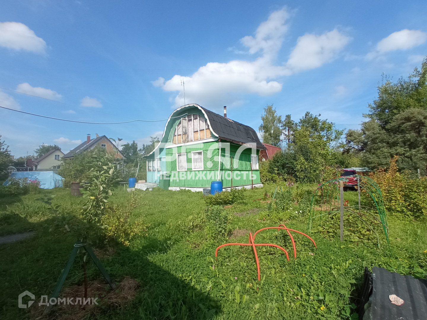 Два сарая, баня, уличный туалет. Дом стоит посередине участка , есть место куда сложить материалы для строительства. Через пару домов за канавой начинается смешанный лес. Грибы и ягоды.