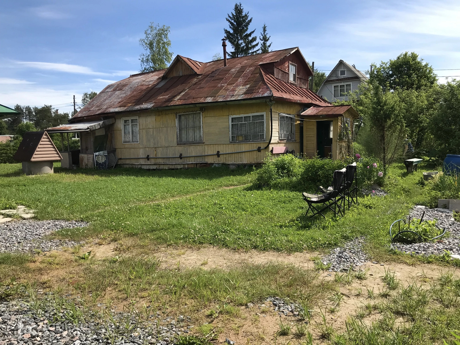 В СНТ « Дозовец» продаются два дома с участком 12 соток. Один дом 2020 г. 6х6 , два этажа, фундамент -сваи, крыша ондулин, недострой. Второй дом 1960г.постройки, фундамент ленточный, крыша -железо, две веранды , две комнаты, печь. На участке отдельный кирпичный домик-кухня и спальня. Проведена вода из колодца, бойлер, газ баллоны. Имеется баня, хоз. постройки, колодец с насосом , глубина -7 колец , центральный водопровод, дровник, летний душ. Распашные ворота оборудованная парковка.
