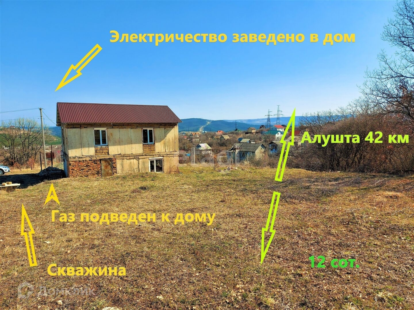 Видовой земельный участок двенадцать соток с двухэтажной дачей под отделку. Прекрасной уединенное место для счастливой жизни, свежий воздух и пение птиц всего 5 км от Симферополя.