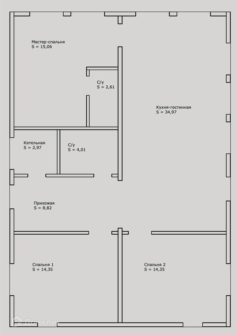 Дом с продуманной планировкой и отсутствием не нужных коридоров, родительская спальня с французскими окнами "в пол" и собственным санузлом с душевой и раковиной, две детских(которые при желании можно использовать под кабинет, библиотеку и т.д.), котельная, общий санузел и просторный зал с кухонной зоной и окнами "в пол", обычными окнами и дополнительной дверью. Дверь может использоваться как окно или при желании можно пристроить террасу, и теплым летним утром завтракать "на природе".