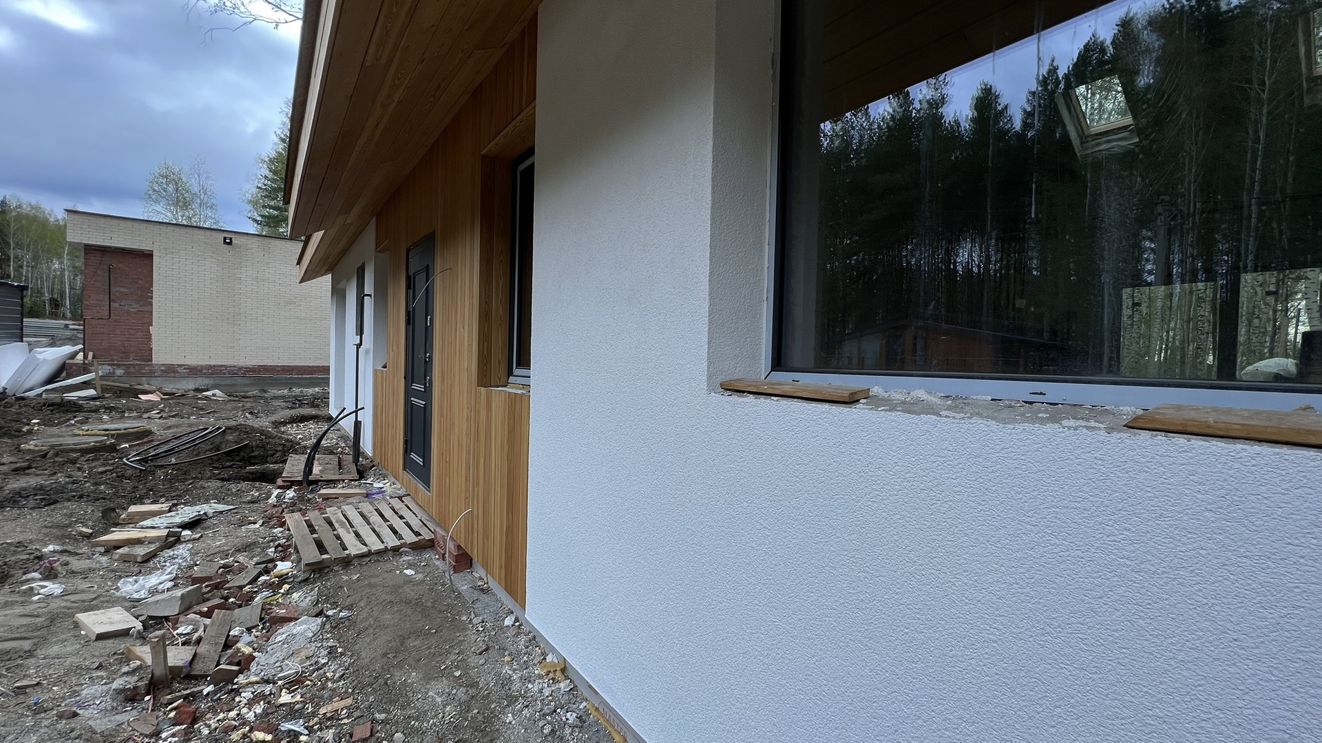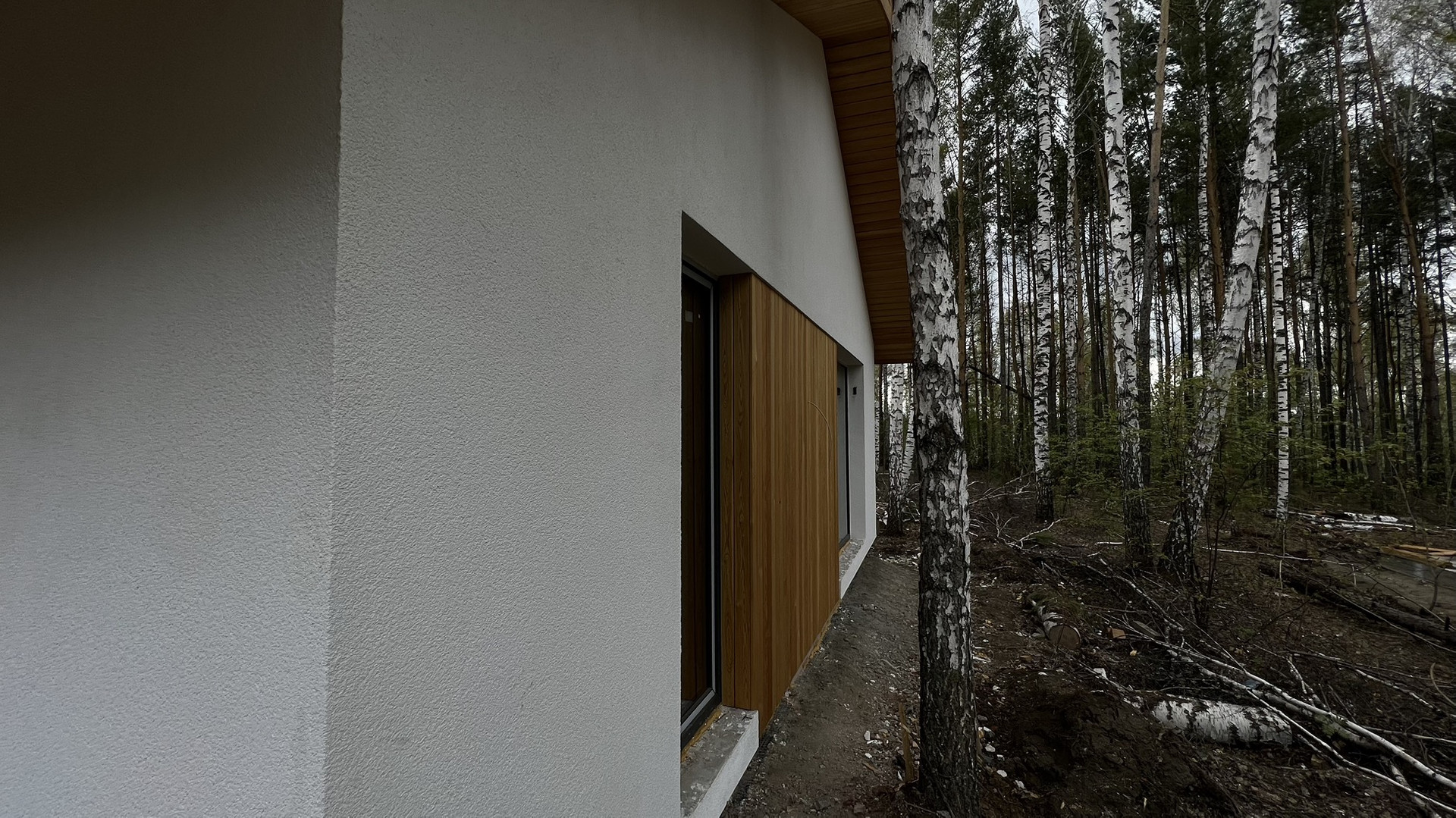 * Внешняя отделка фасадов и карнизов: декоративная штукатурка и строганная доска