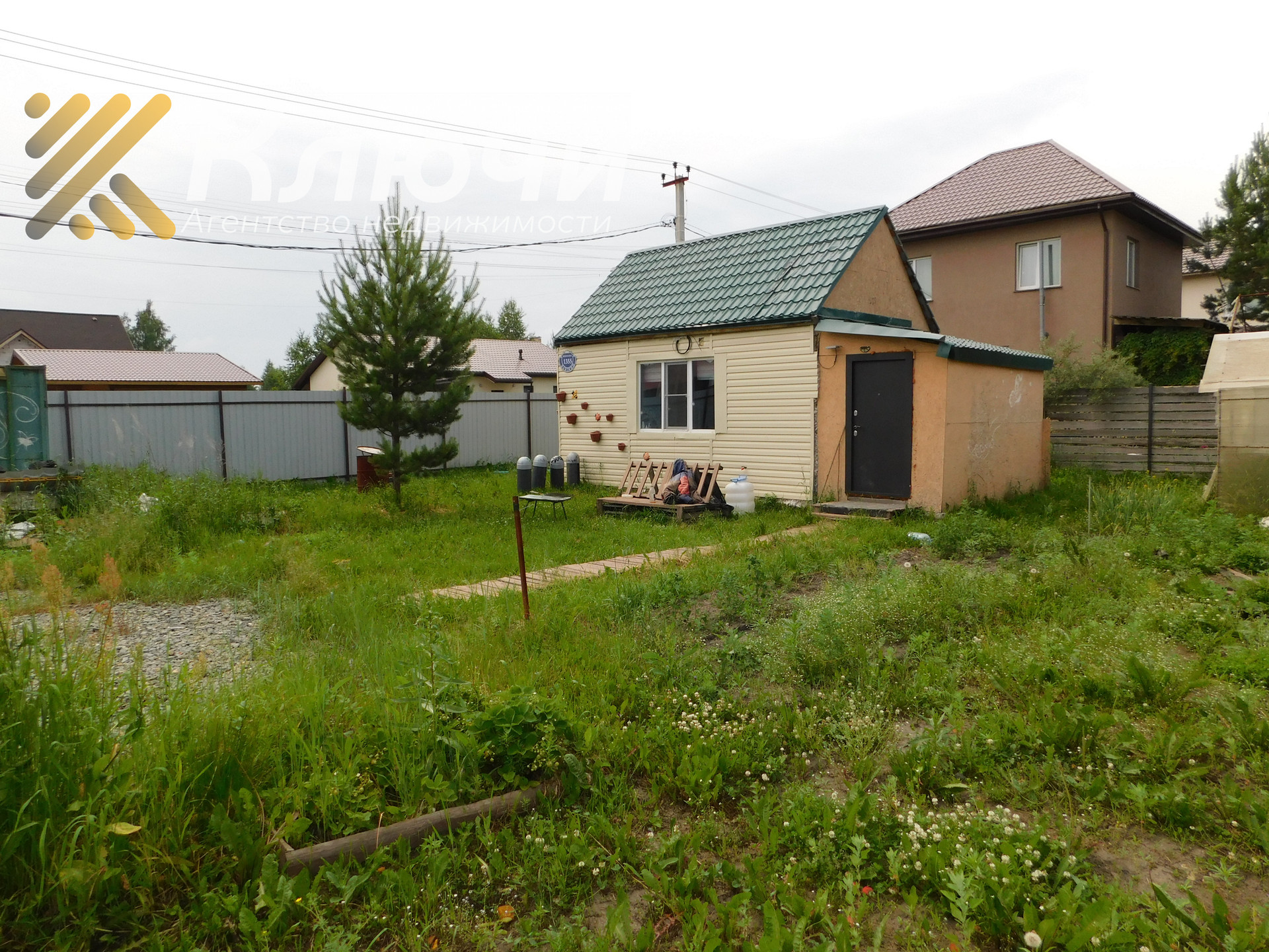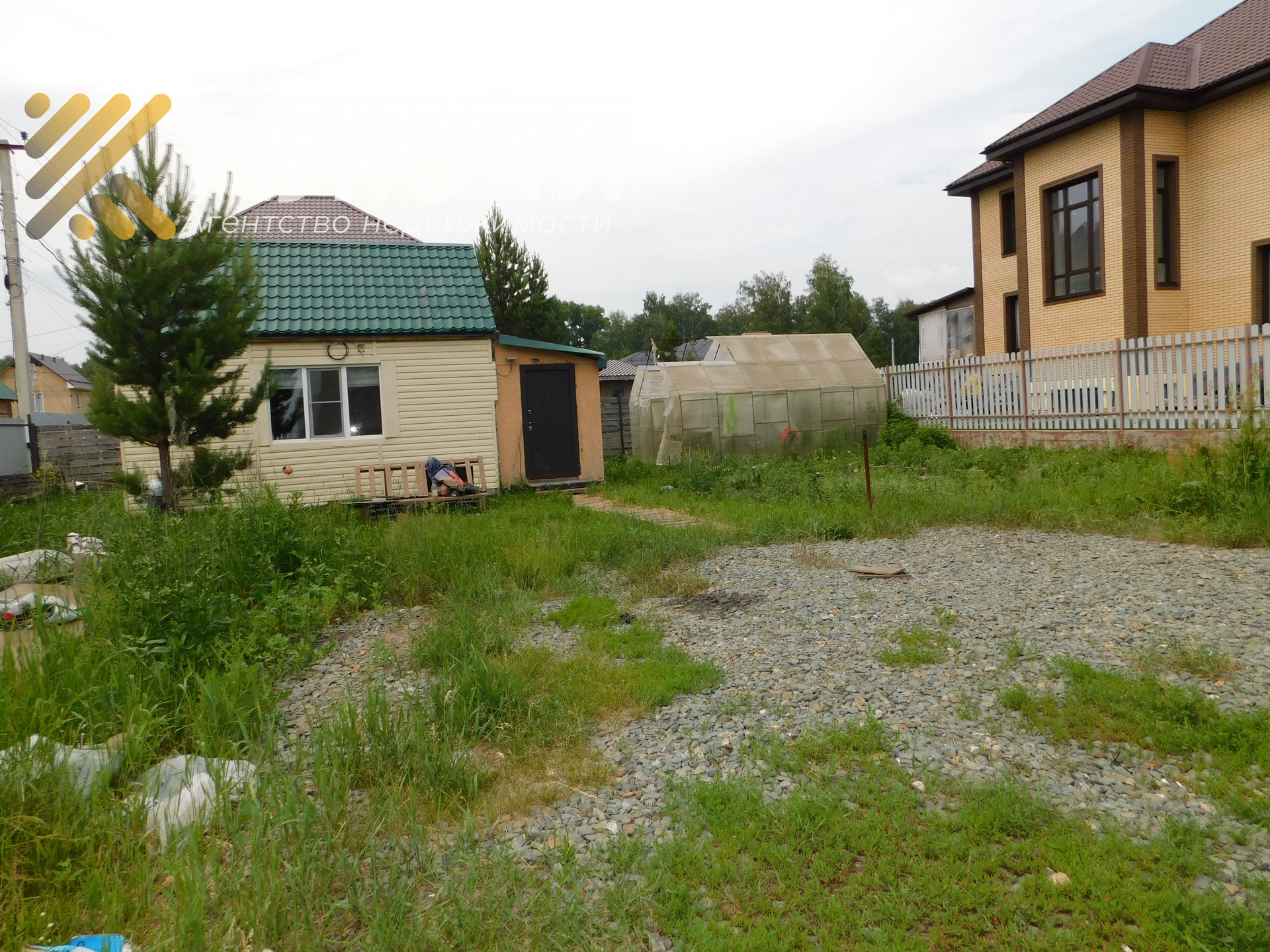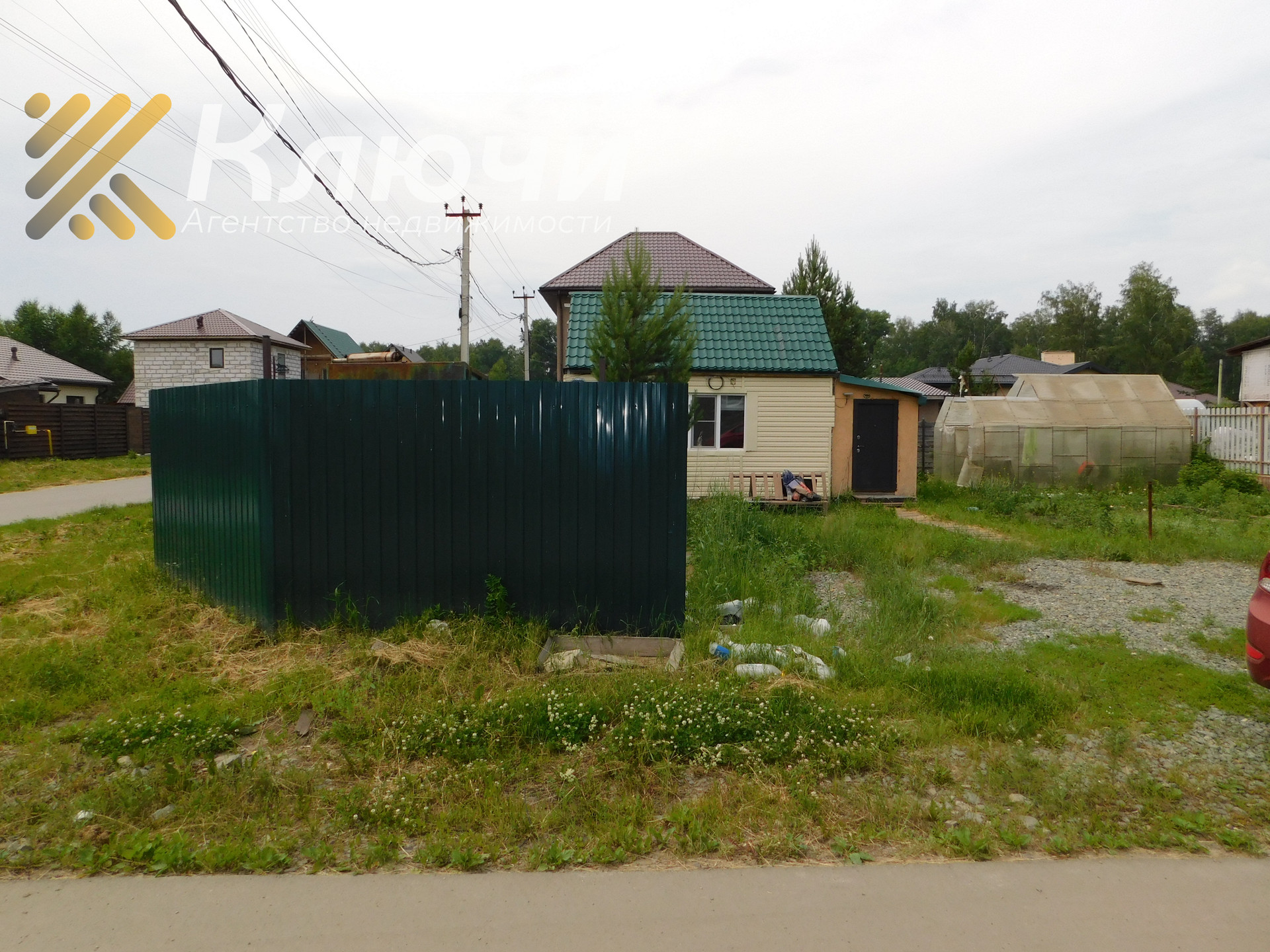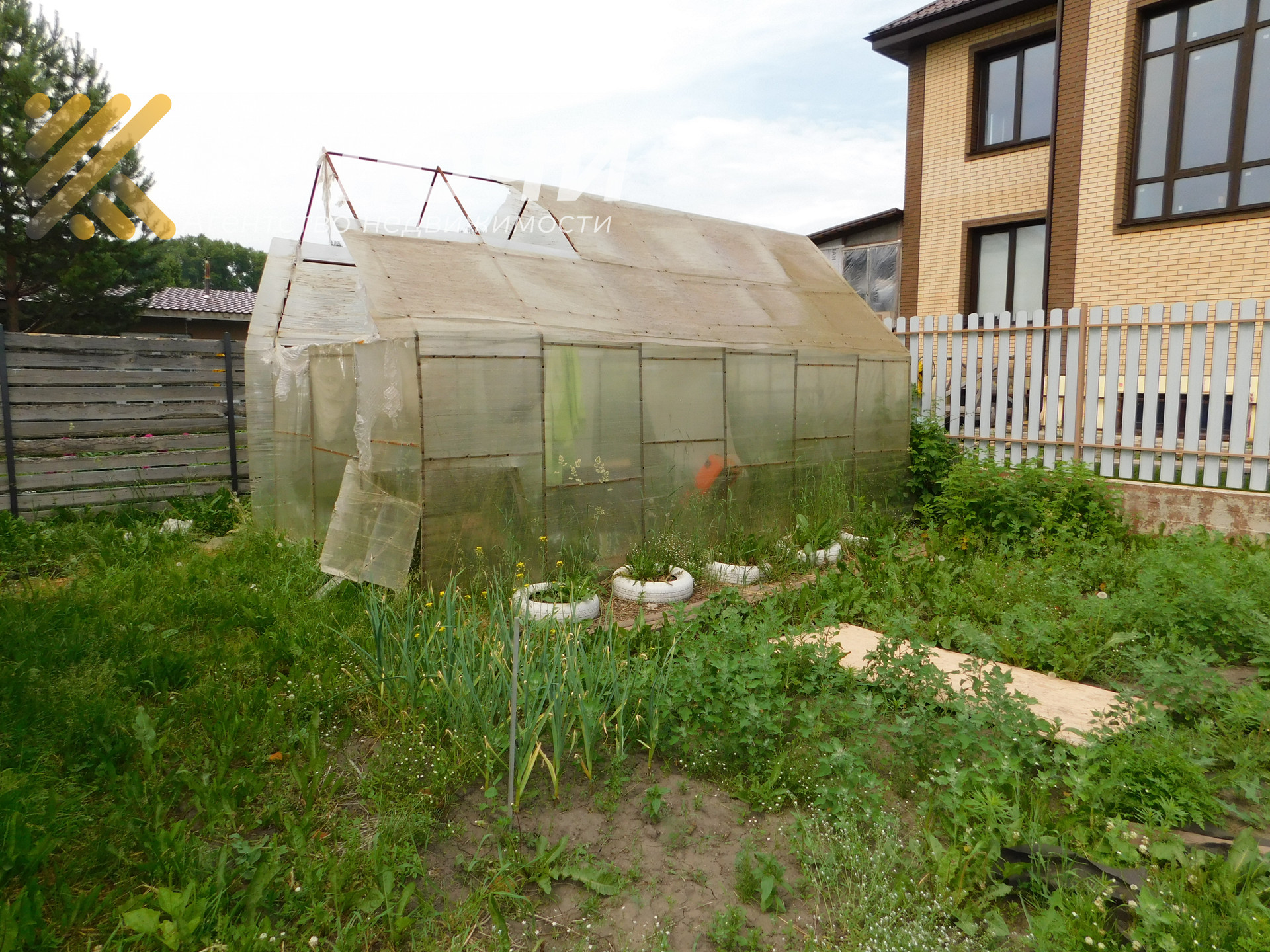 Участок огорожен забором, теплица остается новым хозяевам.
