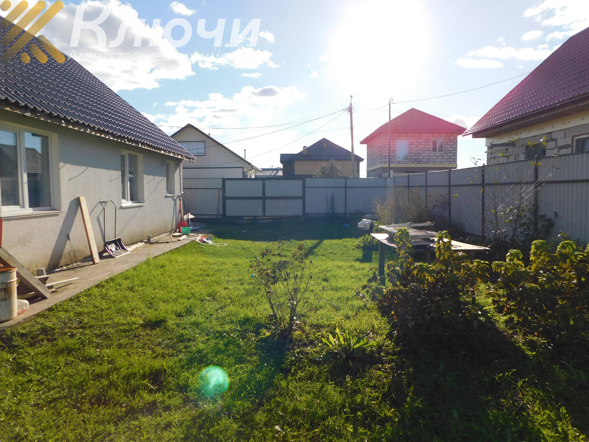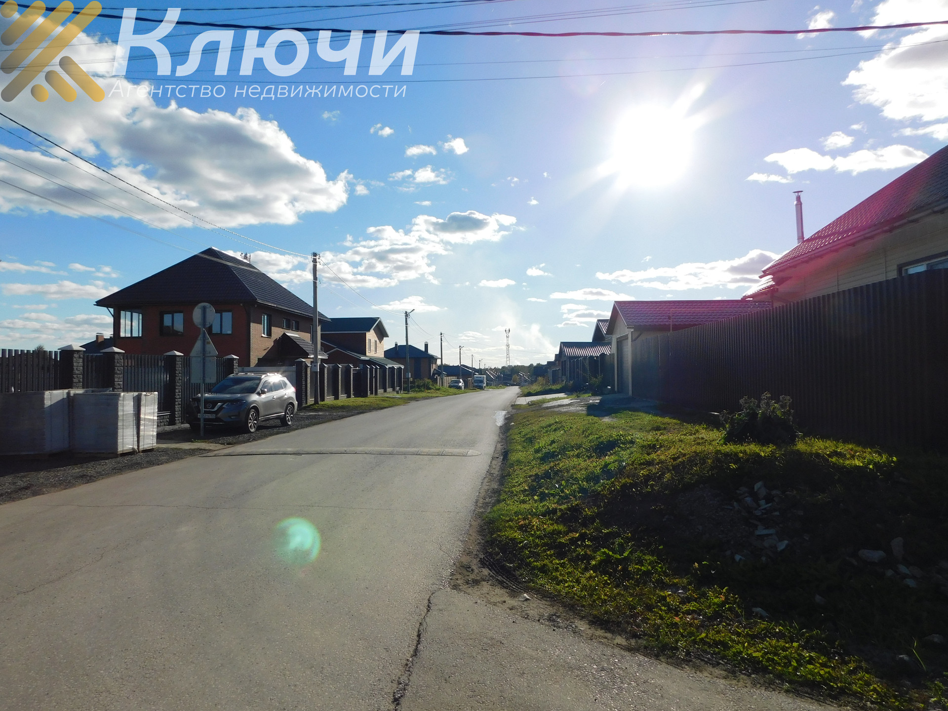 Выезд из поселка в разные стороны города, поселок развит, охрана, магазин, аптека, школа, детский сад, ходит школьный автобус.