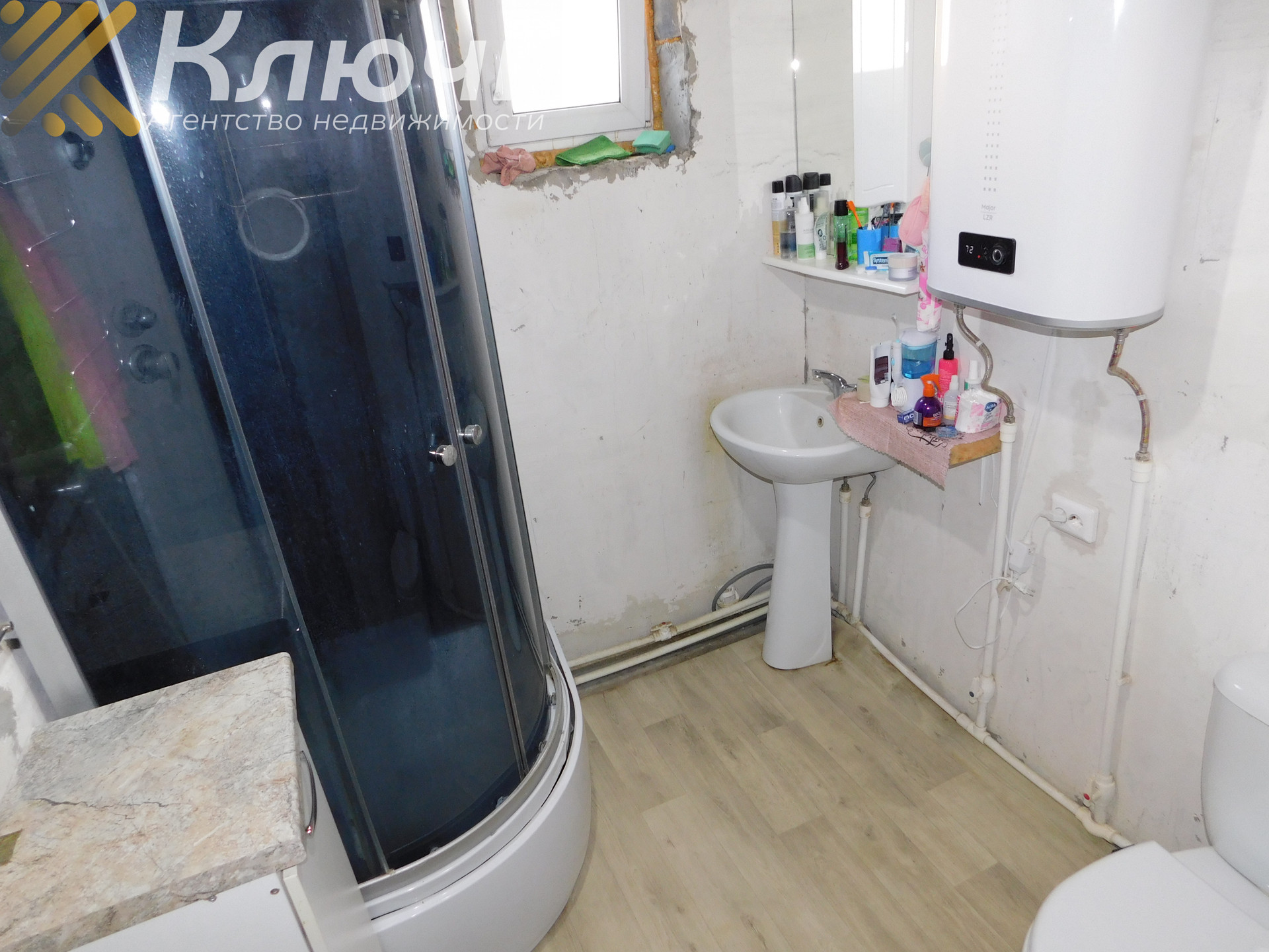 На первом этаже почти все доделано кроме двух комнат и санузла. Оставлено место под лестницу для второго этажа, второй этаж не сделан. Зимой очень тепло, есть тамбур, есть небольшой погреб для хранения заготовок.