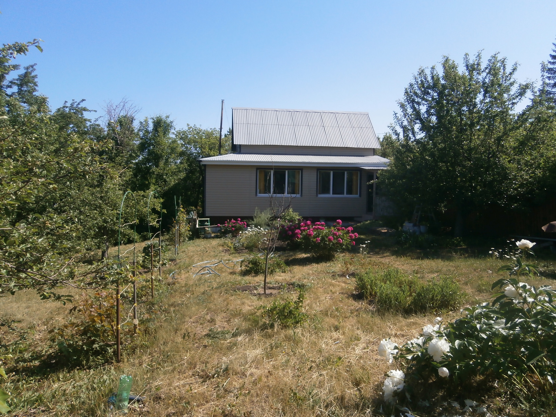 Дом - 2 комнаты, веранда, 2 этаж - комната 3х6 (без отделки), сауна, душевая, котел электронагревательный накопительный, подвал (высота 2,5 м), фундамент бетонный капитальный, окна пластиковые, обшивка сайдинг; на участке теплица 3х6 поликарбонат, гараж металлический, емкость с гидросистемой 3,5 куб., туалет кирпичный; насаждения - плодовые деревья, кустарники; до пляжа р.Сок - 20 мин ходьбы через лес; остановка общ. транспорта - 400 м, электричка