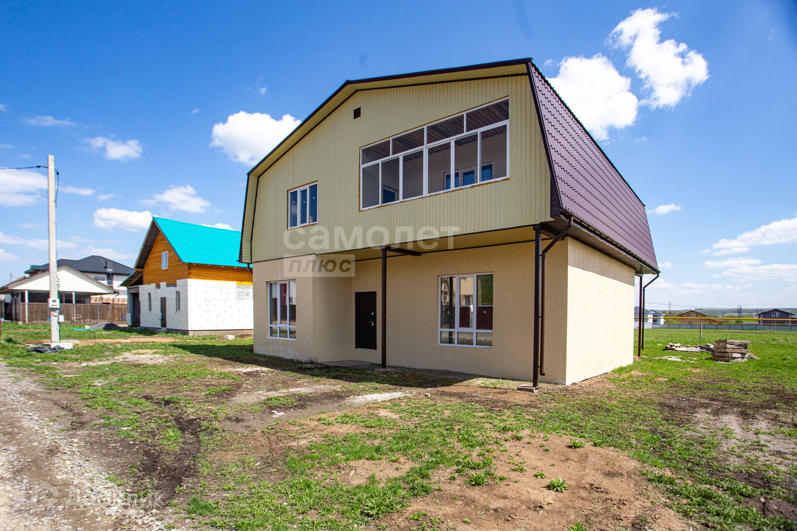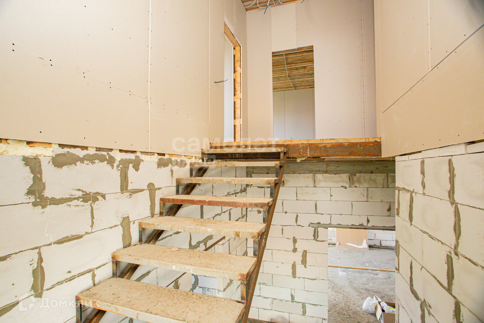 Стены: 1 этаж-газобетон, утеплитель, штукатурка-короед. 2 этаж-дерево с внутренней отделкой гипсокартон. Участок размежеван. Земля и Дом оформлены в собственность. Быстрый выход на сделку. Цена действует пока в доме нет внутренней отделки, далее будет дороже.