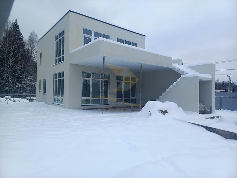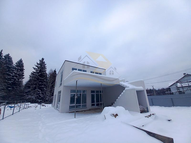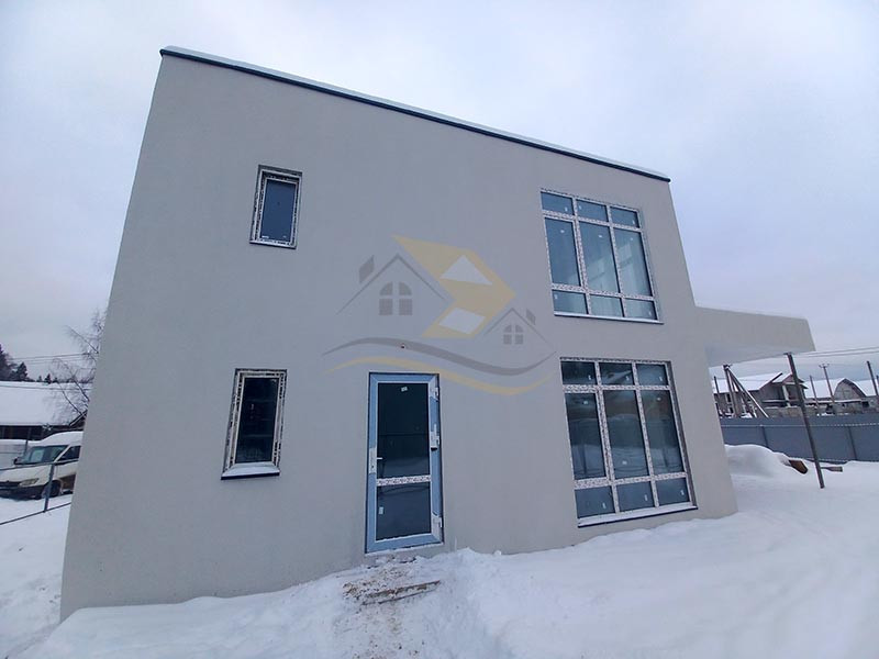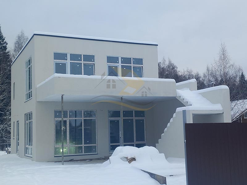 Стены возведены из пеногазосиликатных блоков с монолитными колоннами, окна - ПВХ.