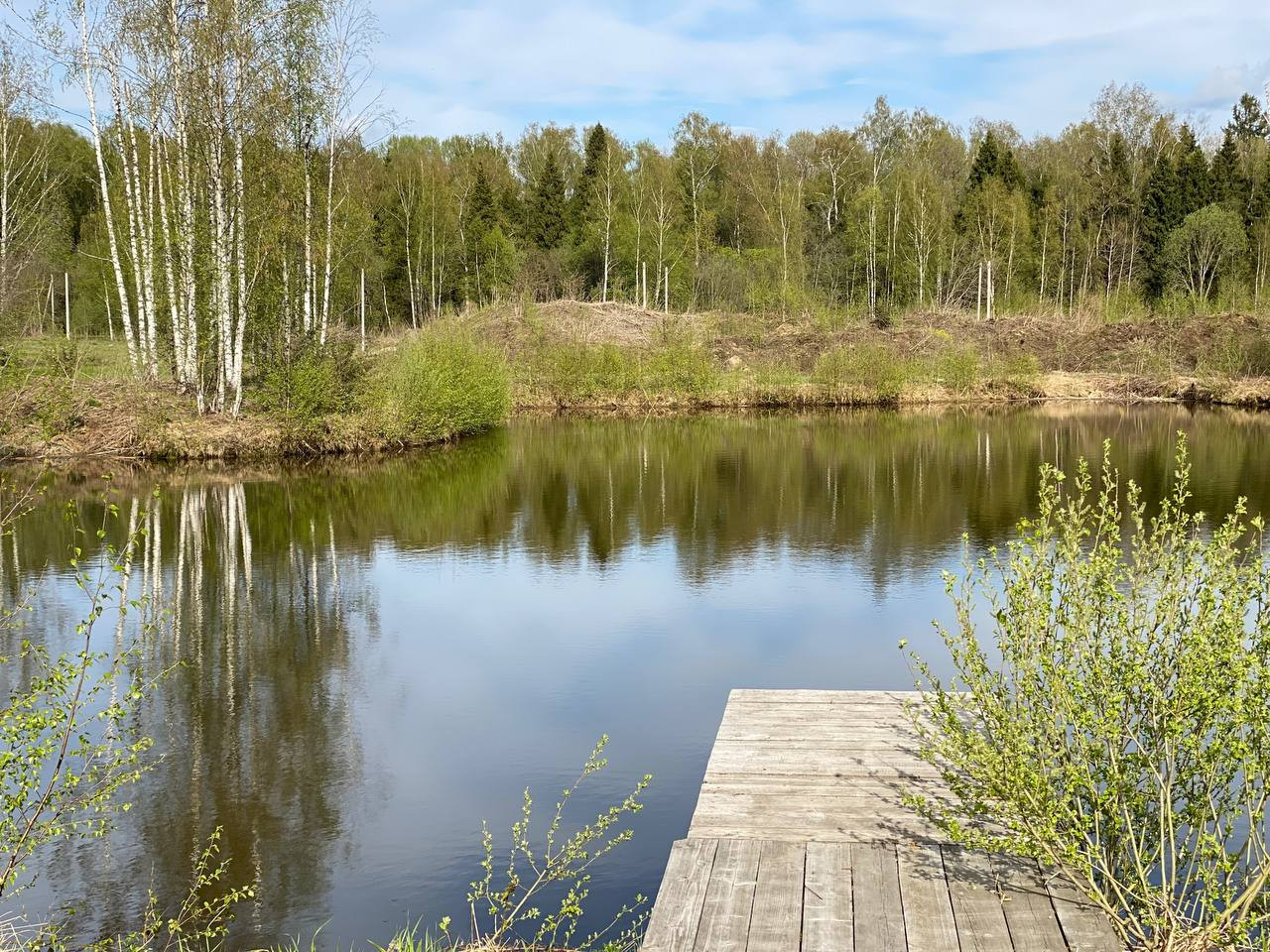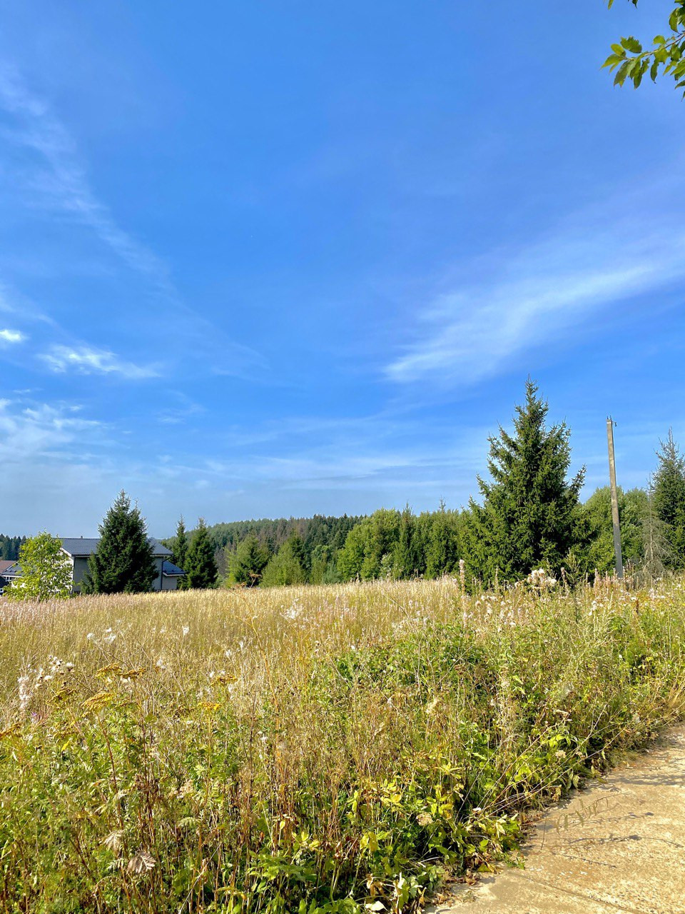 Участок просторный, ровный. С елями на участке, в 50 метрах выход в настоящий лес.