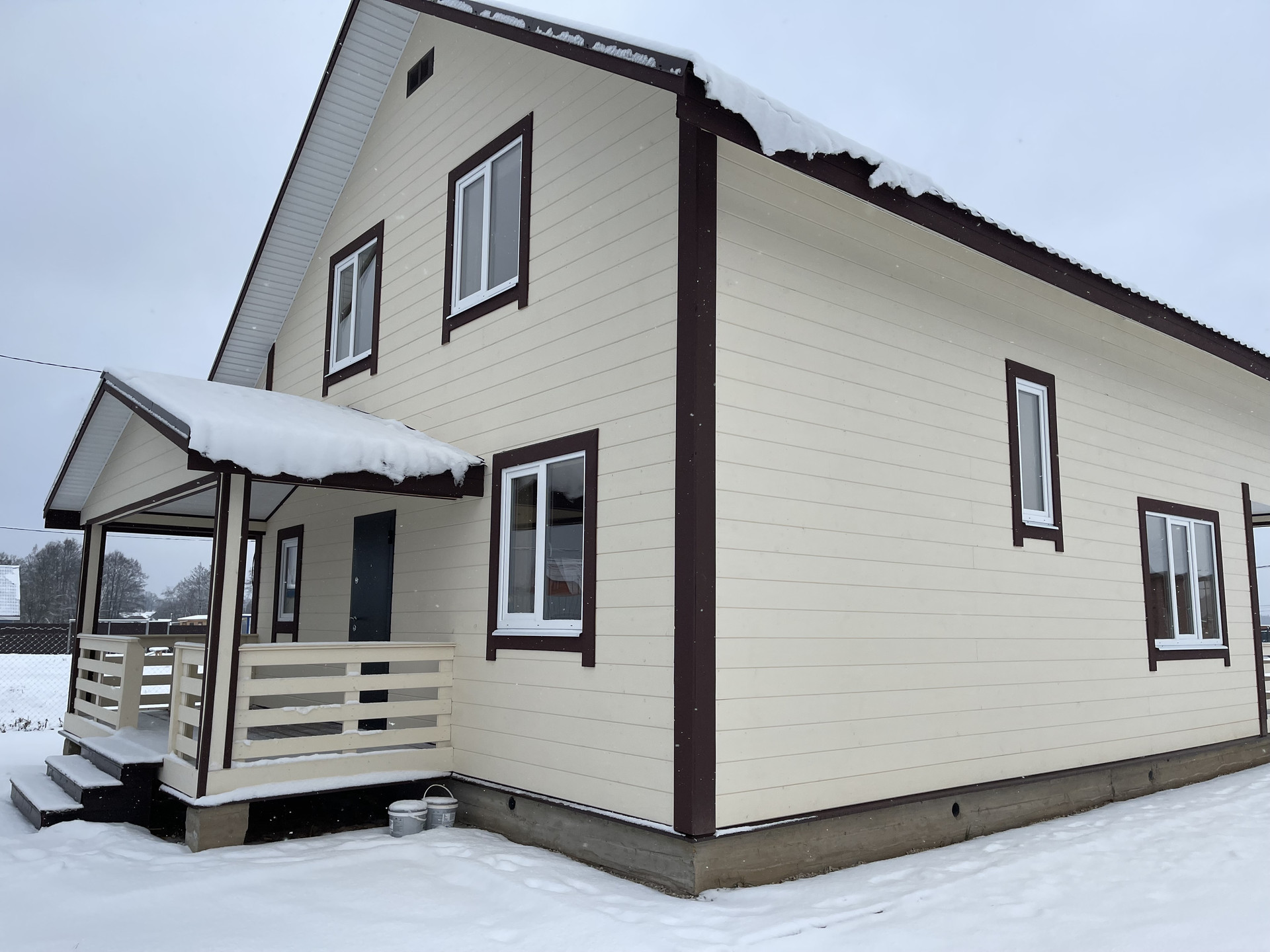 Новый, зимний дом у озера  на участке 10 соток Таширово пос . Бархатово в охраняемом поселке в 60 км по Киевскому, минскому шоссе. Поселок расположен в 60 километрах от МКАД, на берегу Ташировского водохранилища, с двух сторон окружен лесом.  Прописка, охрана, интернет (WI-FI в поселке). Участок  огорожен по периметру. Дом размером 185  кв. м плюс терраса. Дом из бруса, утеплен, полная отделка. Установлена сантехника. В доме 4 спальни (1 на первом этаже), просторная кухня-столовая с выходом на террасу. Санузел оборудован на двух этажах. Электричество подключено. Водоснабжение - колодец, канализация - септик. Отопление - электро котёл. Электричество 7кВт, возможно увеличение мощности, тариф день/ночь.