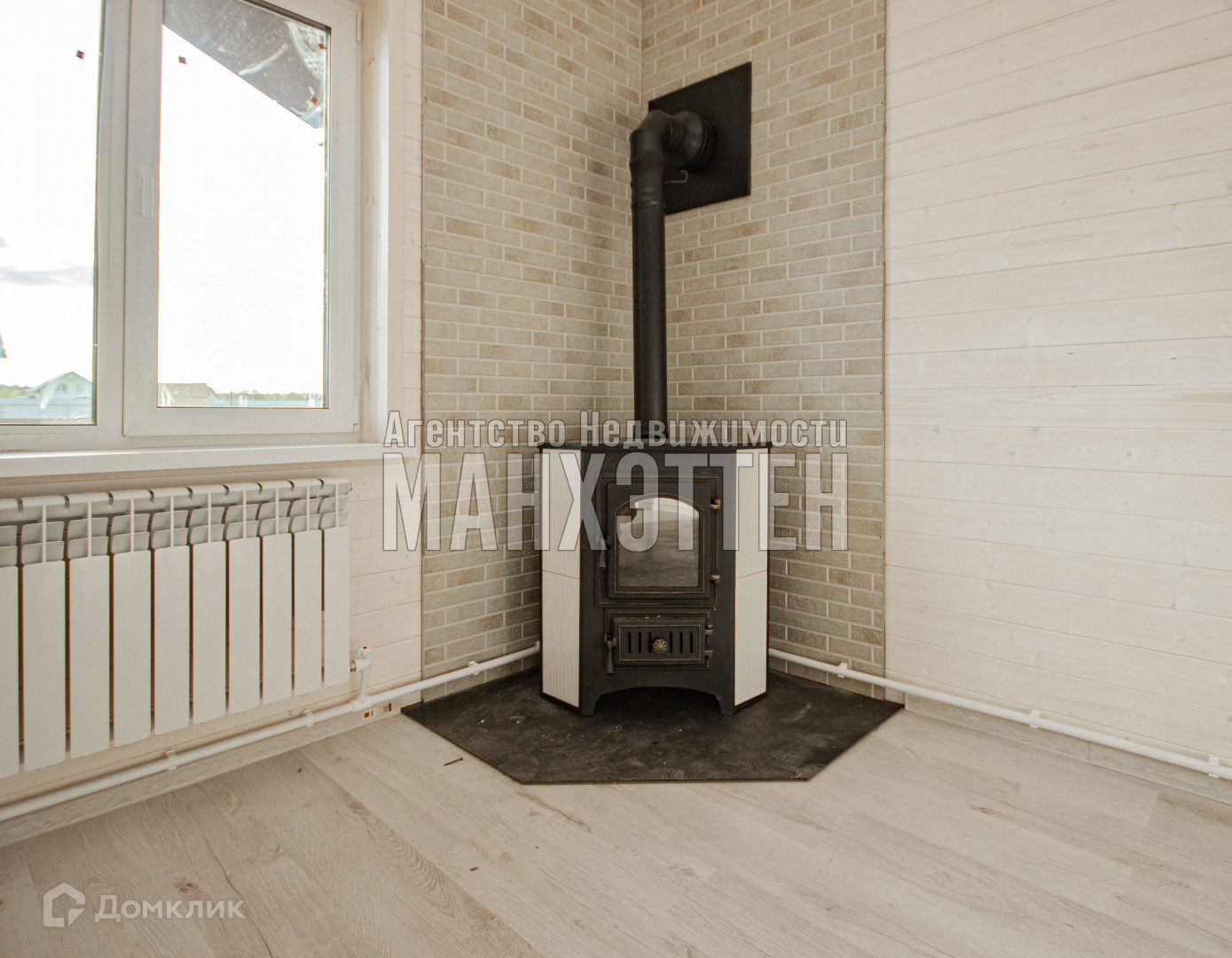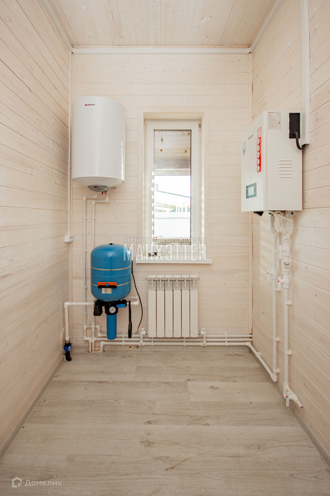 Электрика разведена, электрич. котёл термикс, радиаторы под каждым окном, камин-отапливается дровами;
