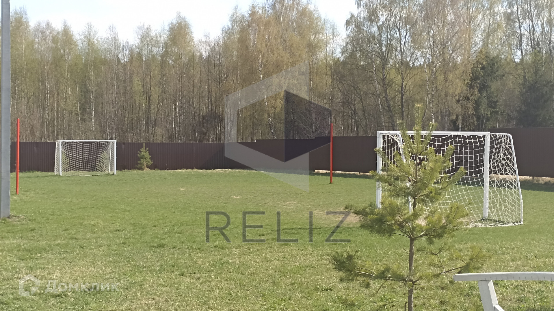 Детская игровая площадка и футбольное поле.
