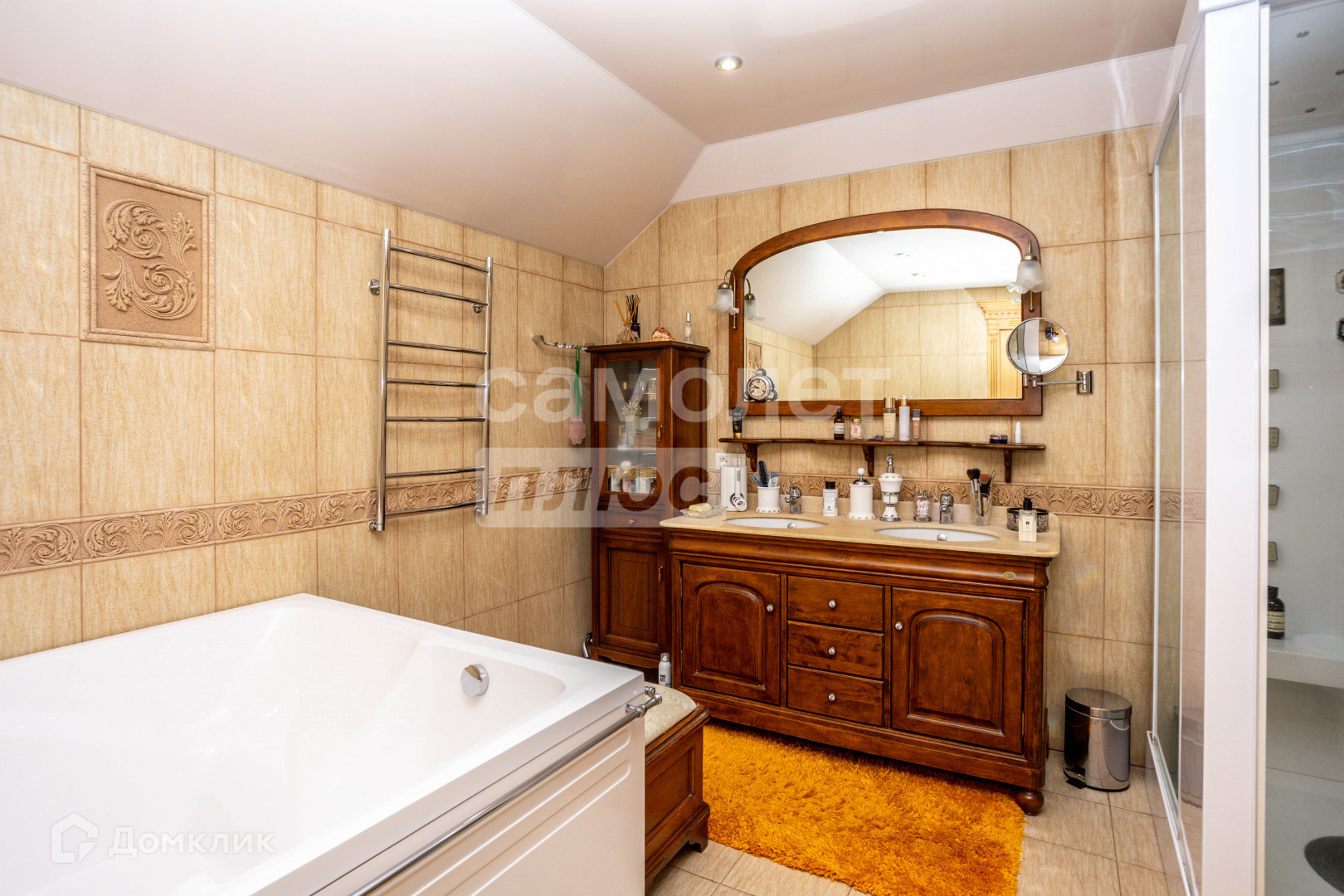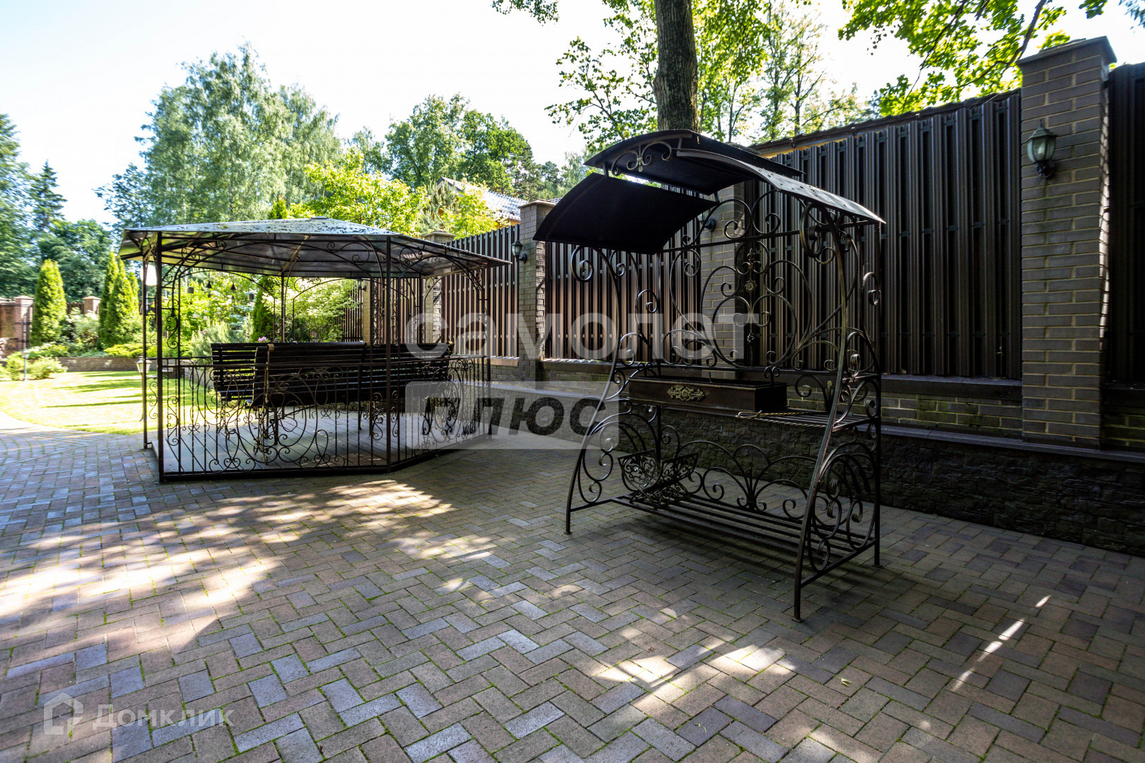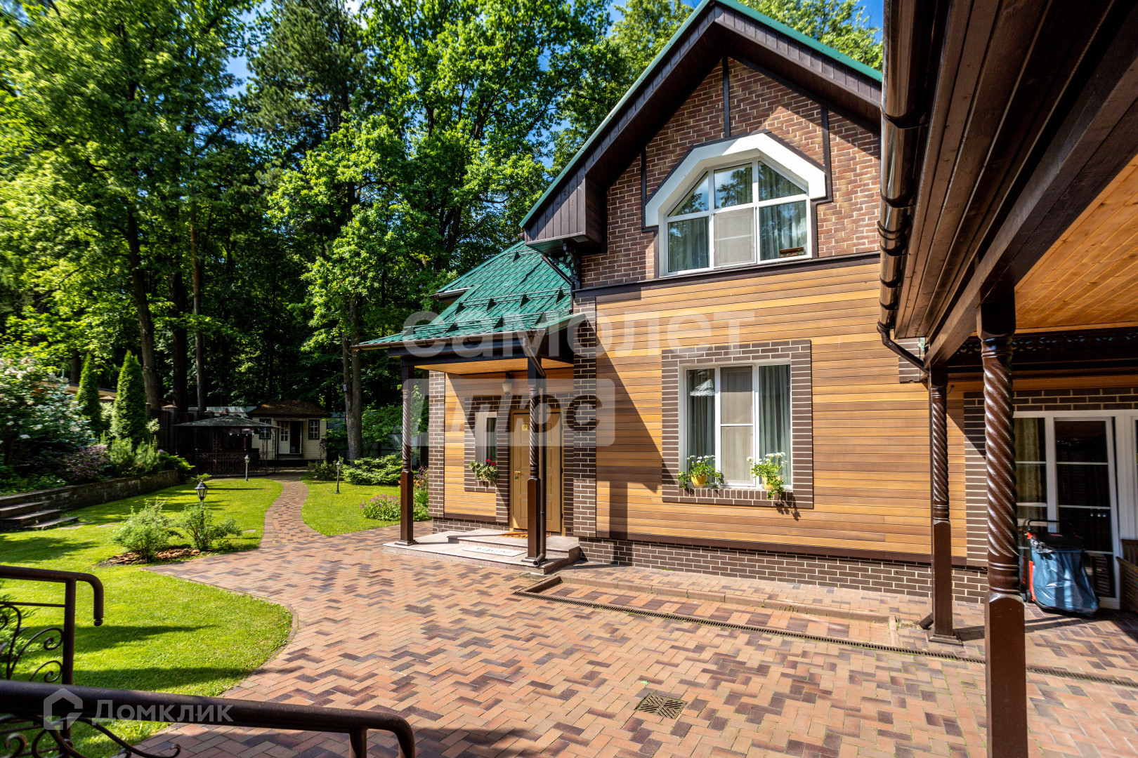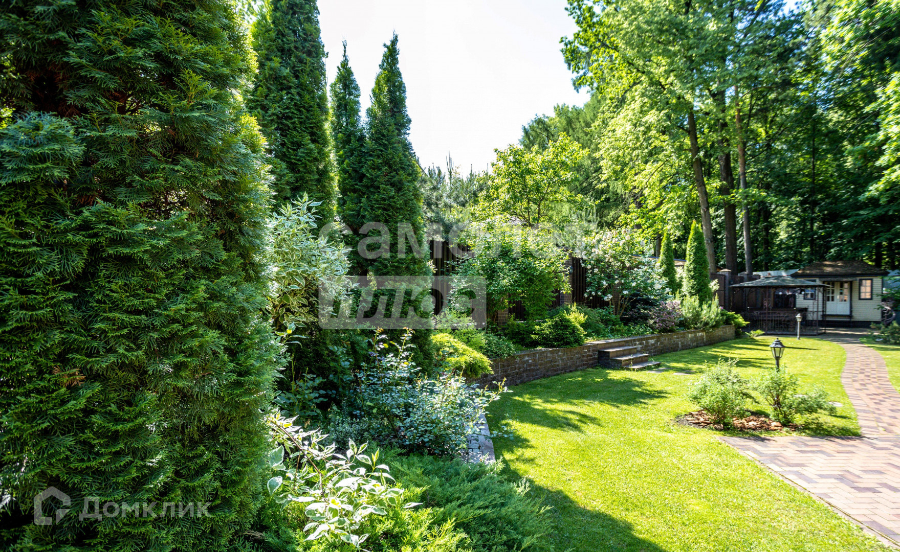 Ландшафтный дизайн удивительного участка площадью 12.6 соток выполнен по проекту ВДНХ. Облицовка из натурального камня, дорожки, вековые деревья (кедр, дуб, лиственница), туи, кустарники, плодово-ягодные деревья, кованная беседка, хозяйственный домик несомненно будут восторженно оценены каждым Вашим гостем и приковывать взгляды соседей.