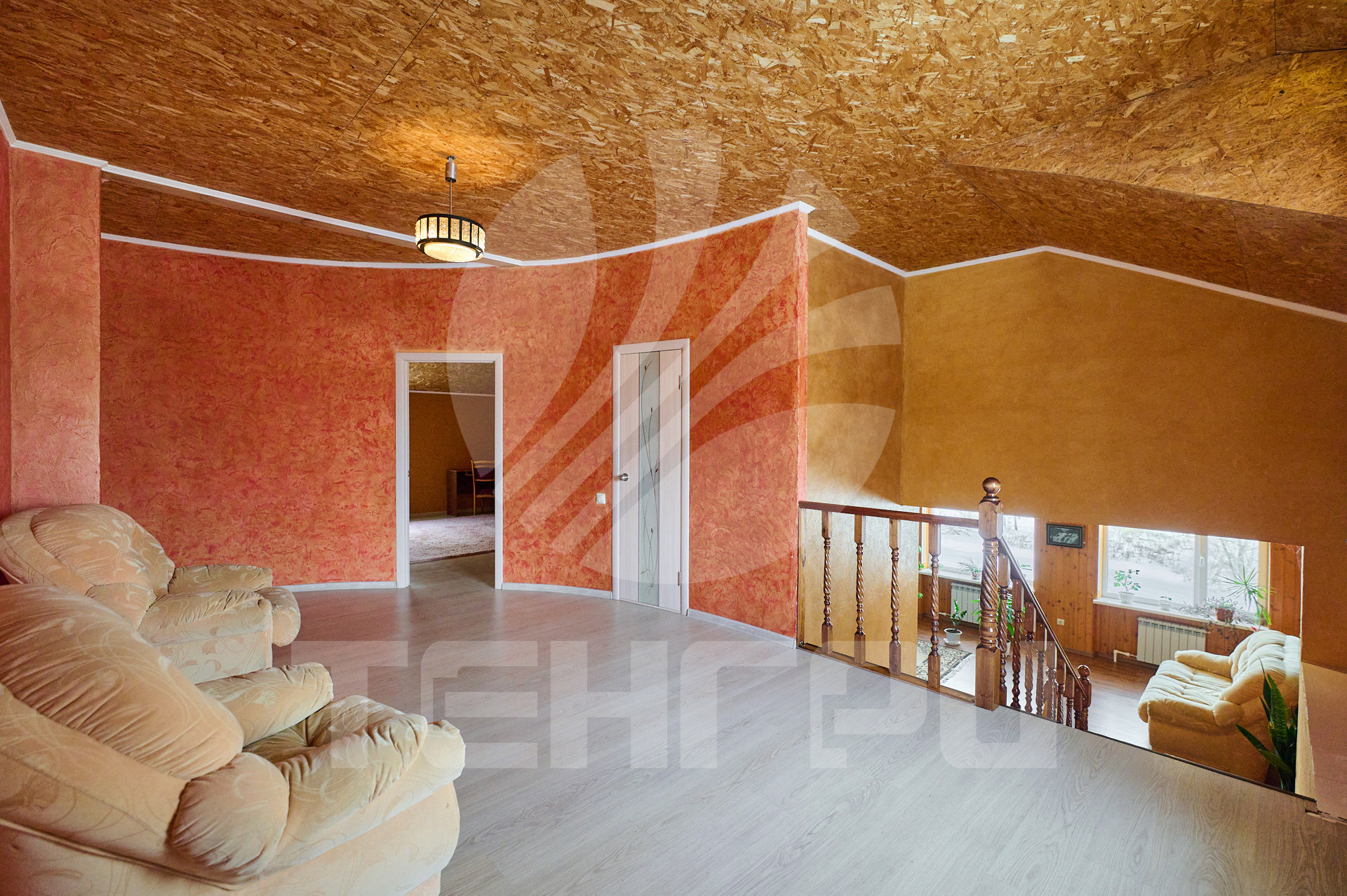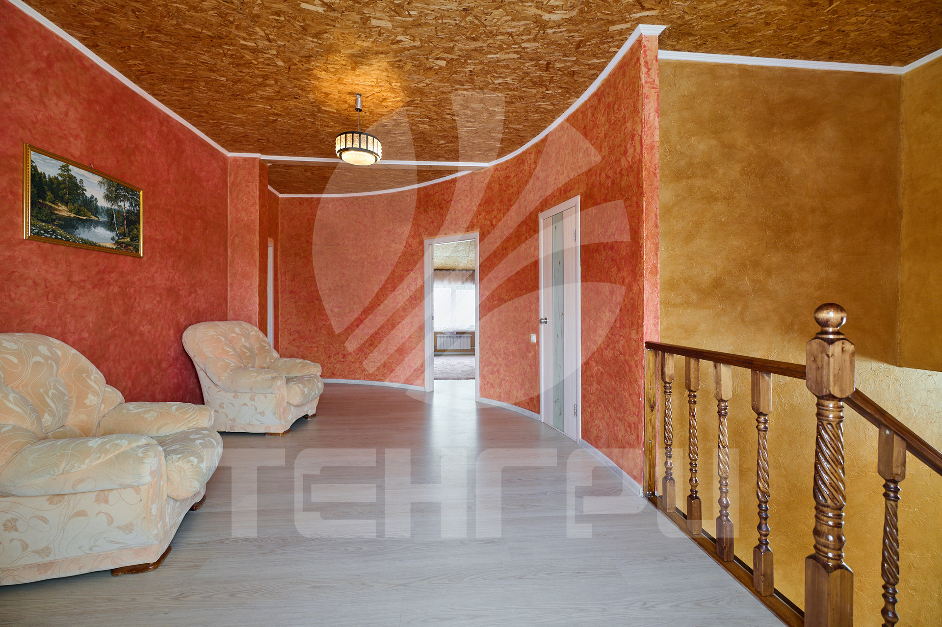 На втором этаже три спальные комнаты.