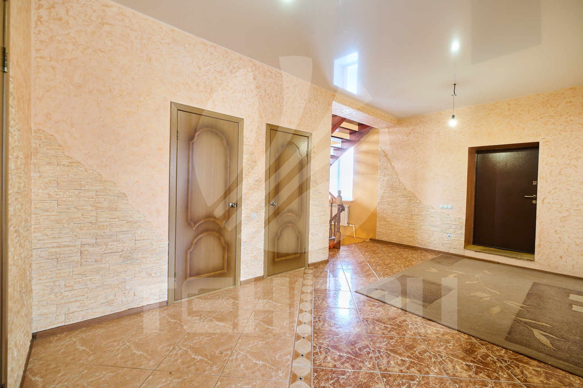 На первом этаже кухня-гостиная, комната, ванная, туалет, подсобные помещения.