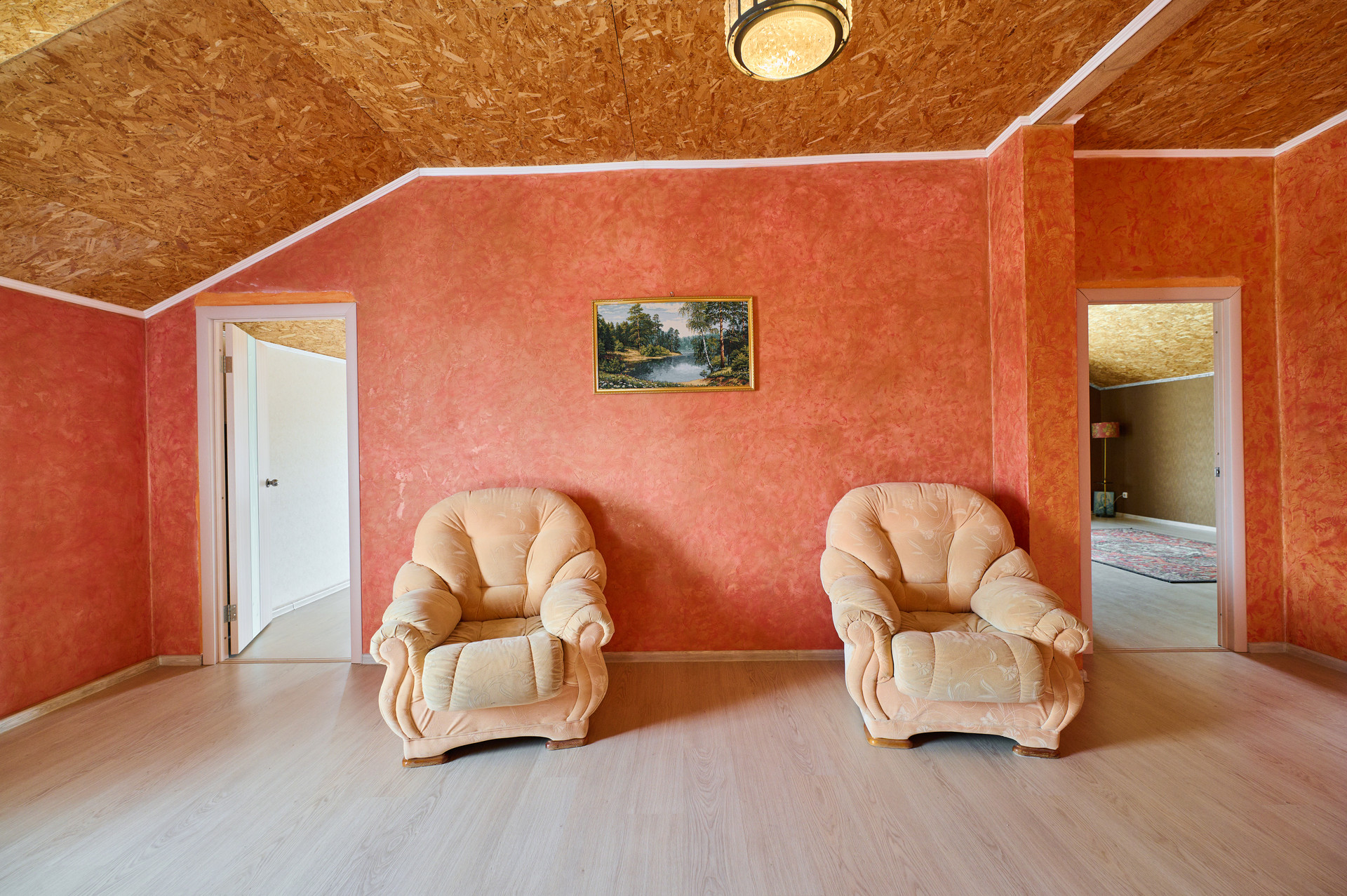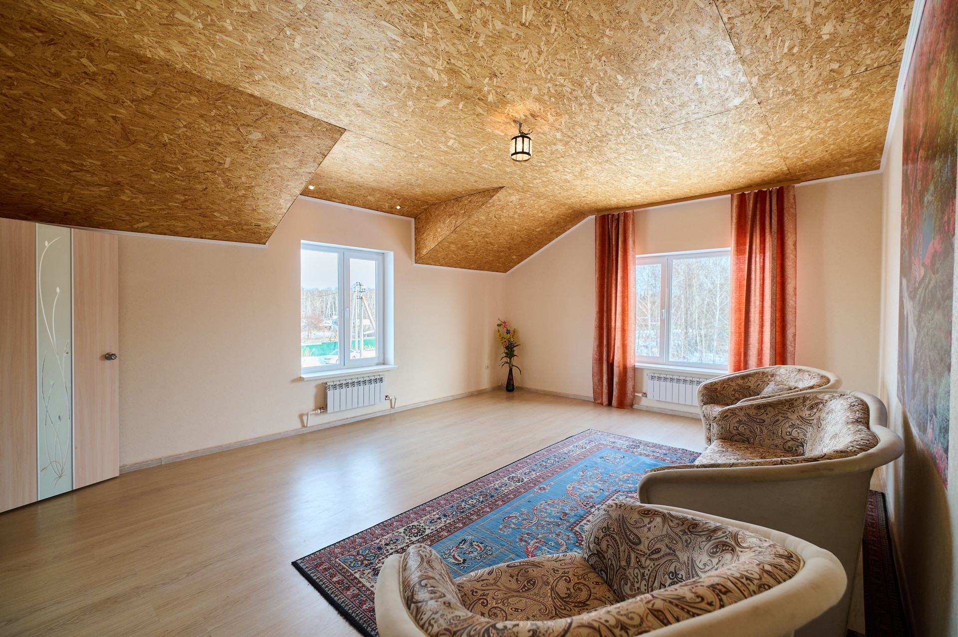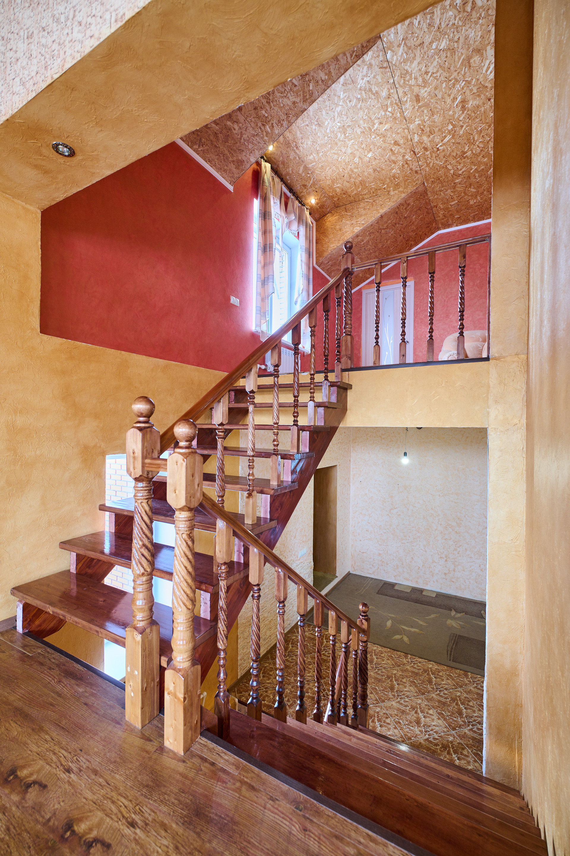 На втором этаже три спальные комнаты.