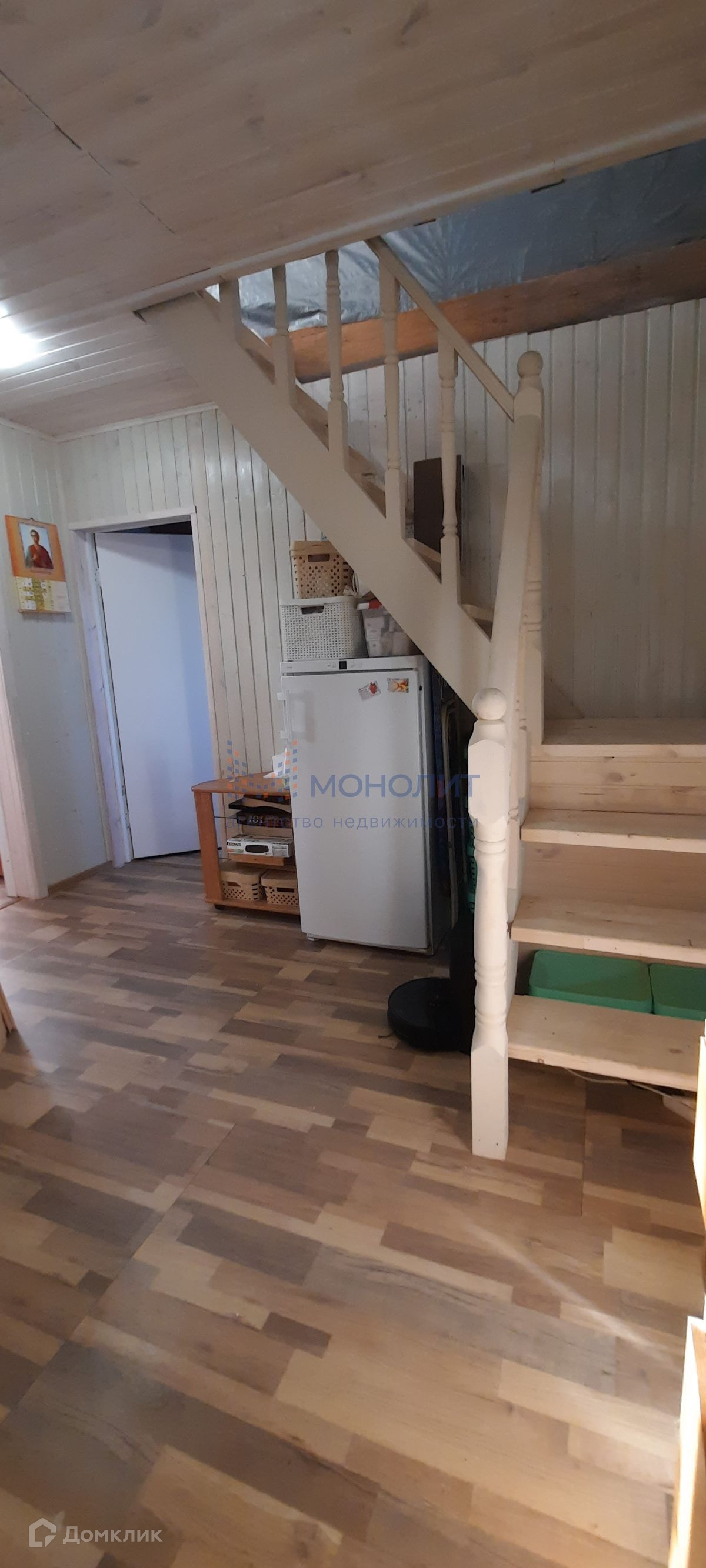 Лестница на второй этаж выполнена из сосны.