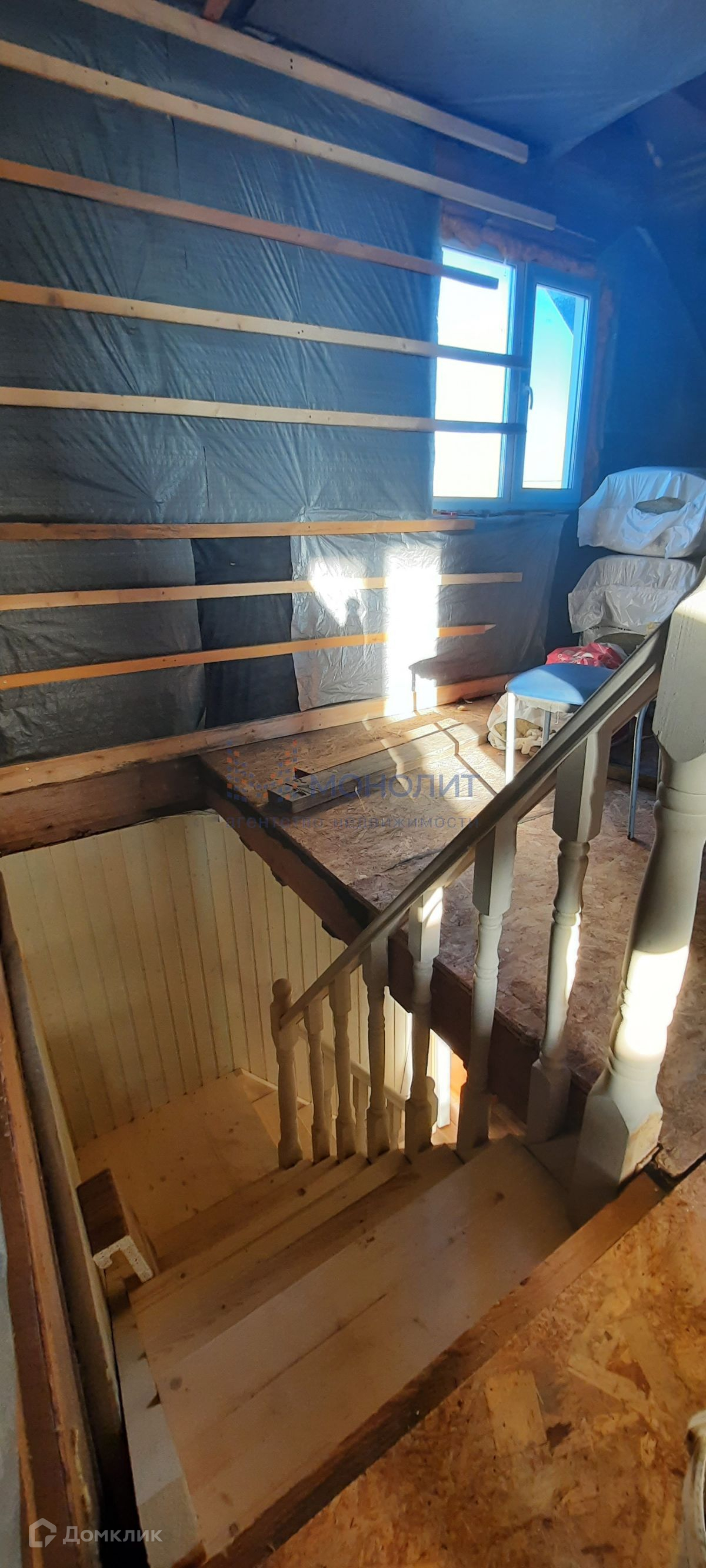 Второй этаж: 3 комнаты + санузел, этаж утеплен, начаты подготовительные работы к отделке комнат.