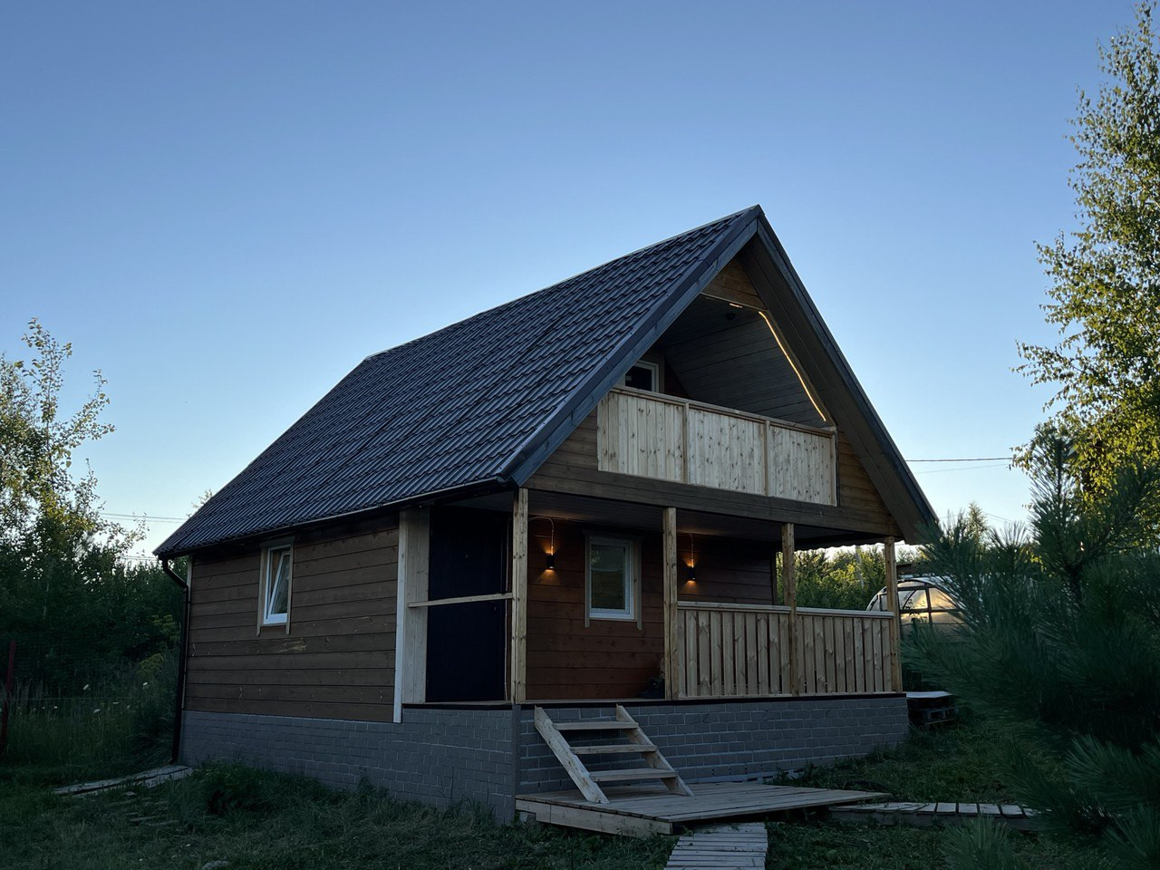 Участок 10 сот, площадь дома 70м2, включая балкон и террасу. Дом пригоден для круглогодичного проживания.