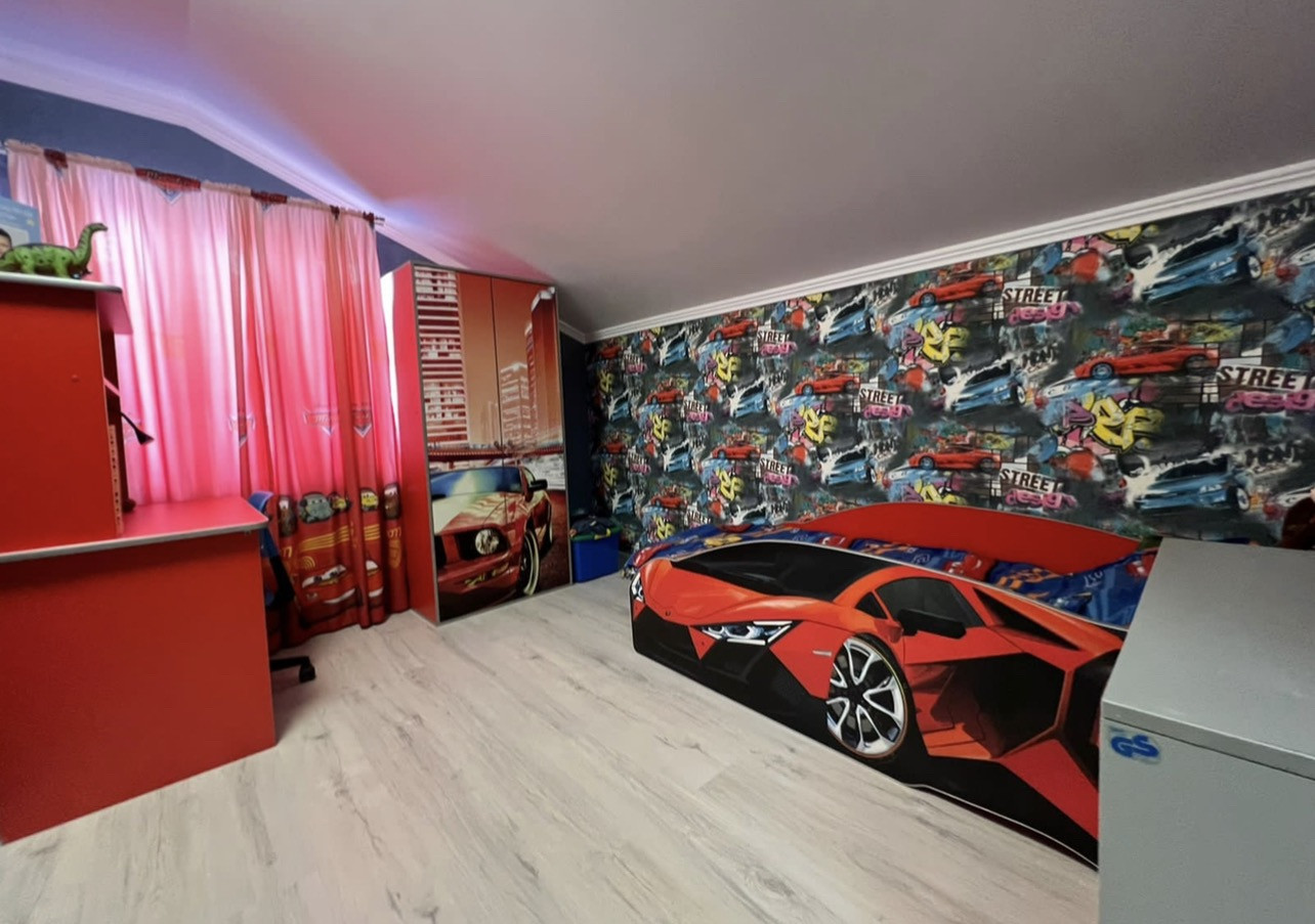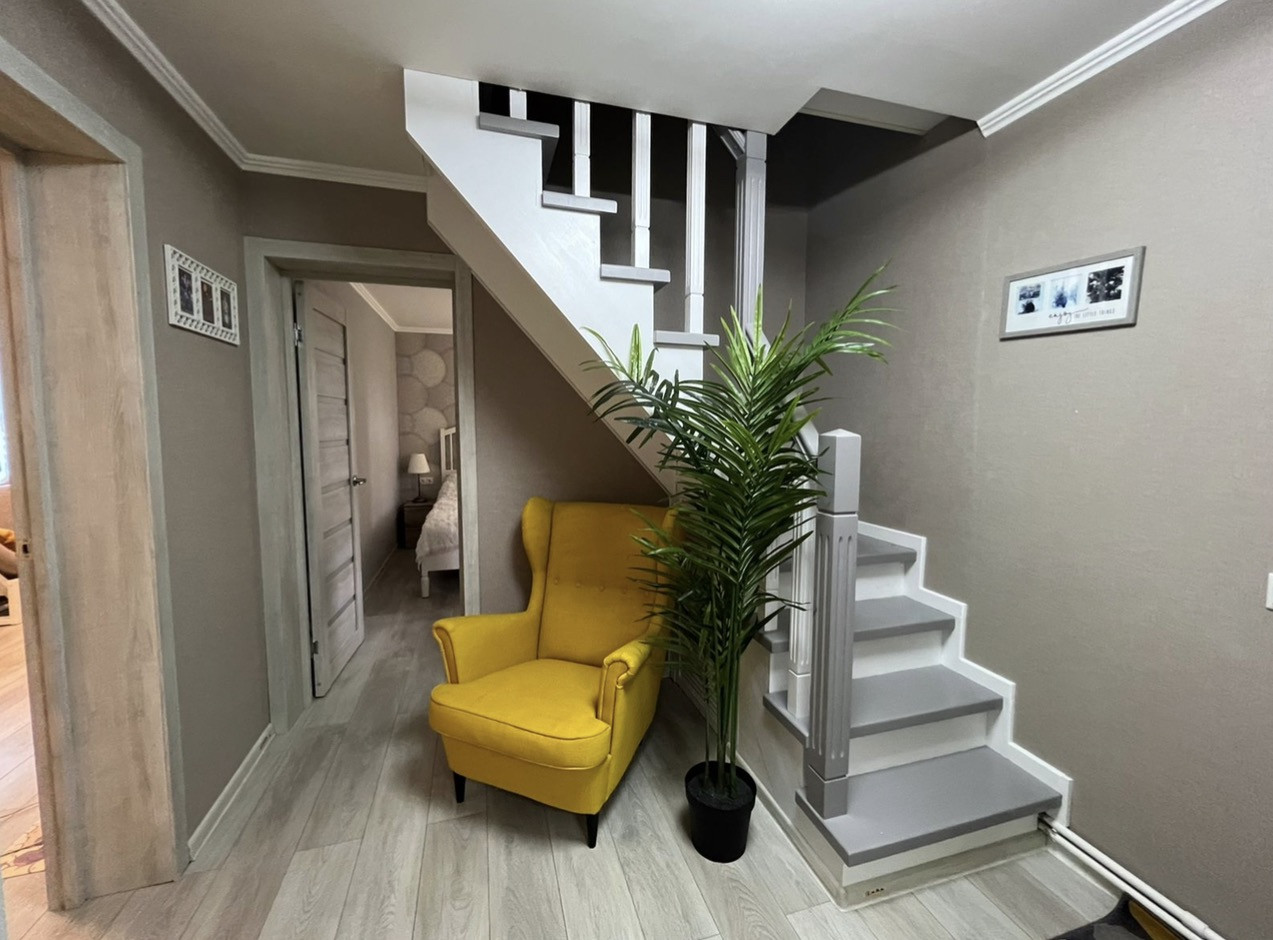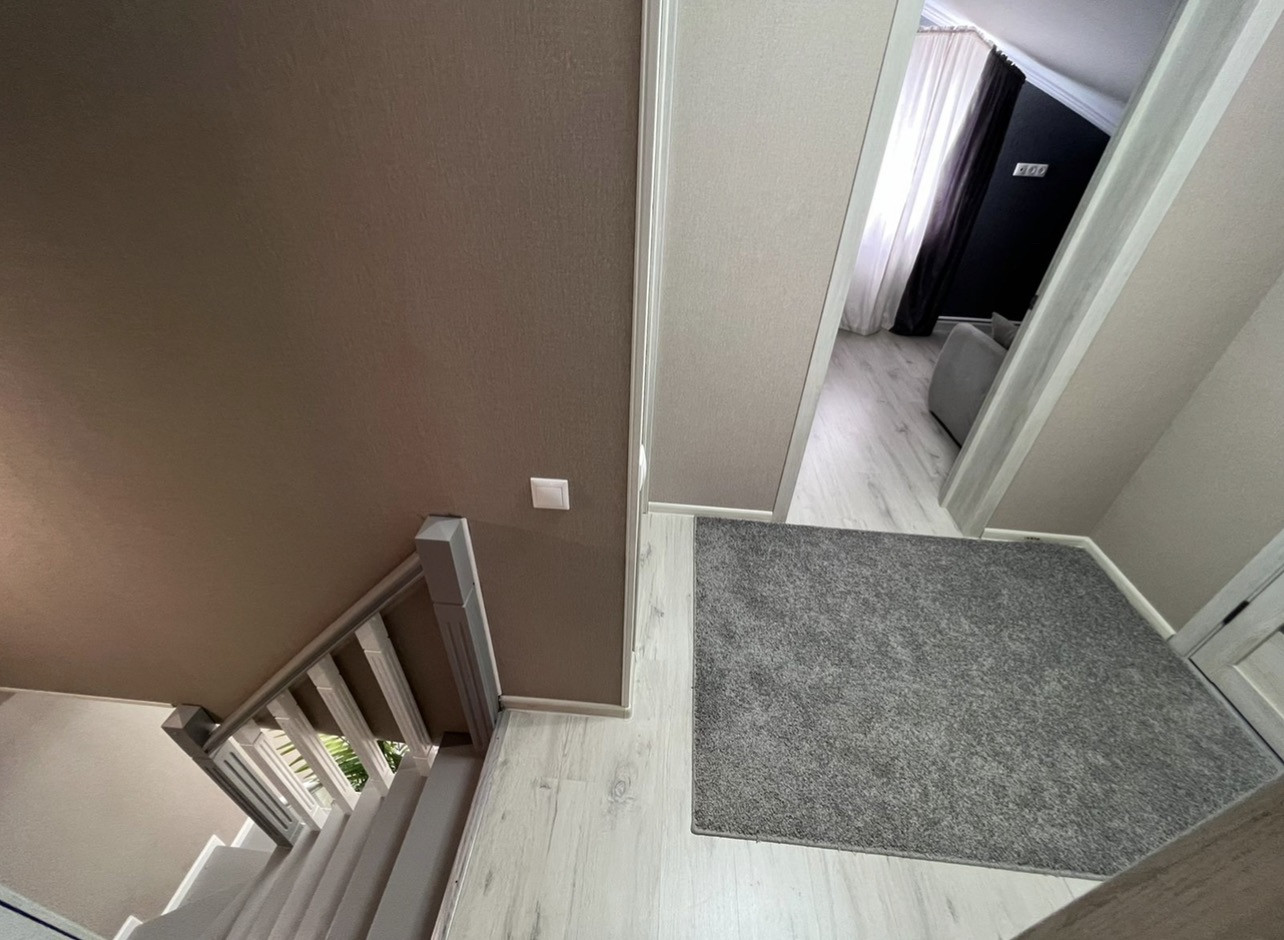Большая застекленная терраса, утеплённая входная дверь.  В доме на 1 этаже находится спальня, кухня и гостиная, так же сан узел с большой ванной. Бойлерная. Газовый котёл, расширительный бочок. Установлена система фильтрации воды. На втором этаже 4 жилых комнаты.