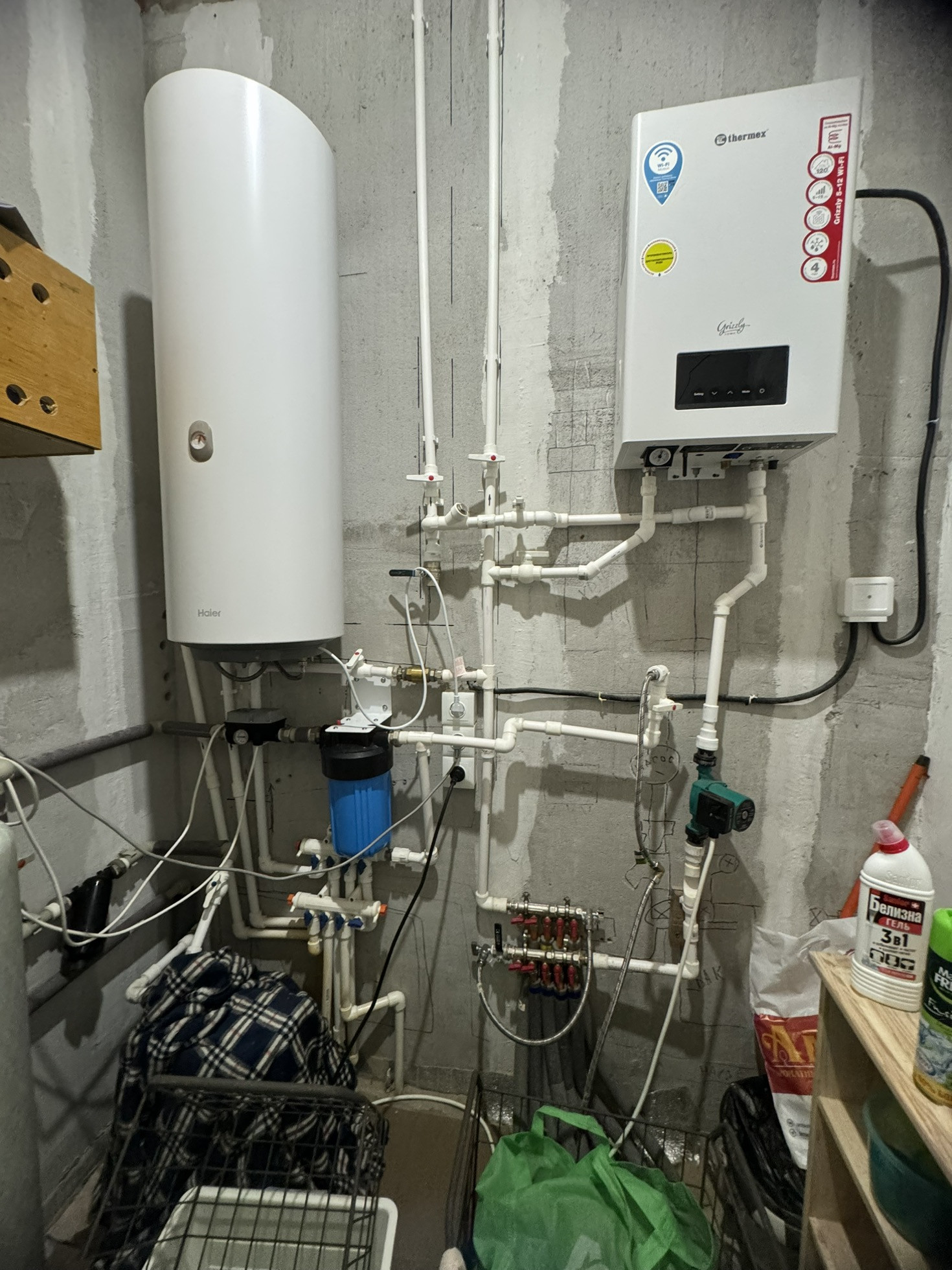 -На первом уровне находится входная группа , кухня-гостиная, бойлерная, 2 полноценные комнаты, санузел с ванной. В бойлерной зоне стоит система очистки воды