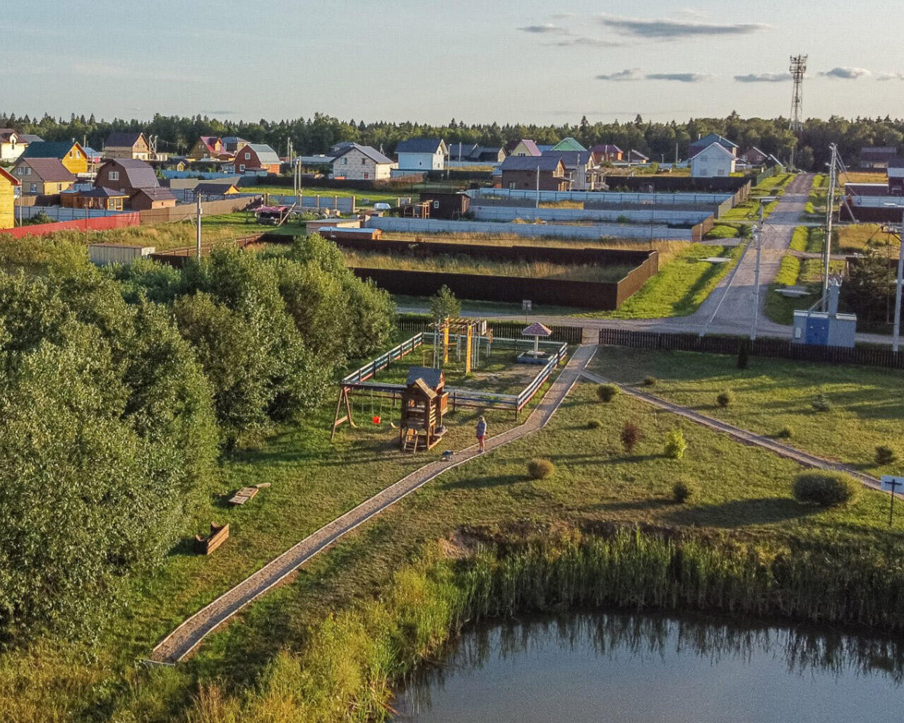 Зимой дороги чистятся. В посёлке - детские площадки, парковая зона, озеро. В поселок проведен интернет. Территория обжитая, соседи живут постоянно. Отличная транспортная доступность. Рядом находится ж/д станция Дорохово. Остановка общественного транспорта, маршрутом номер 22 или 45 до посёлка 10 минут.