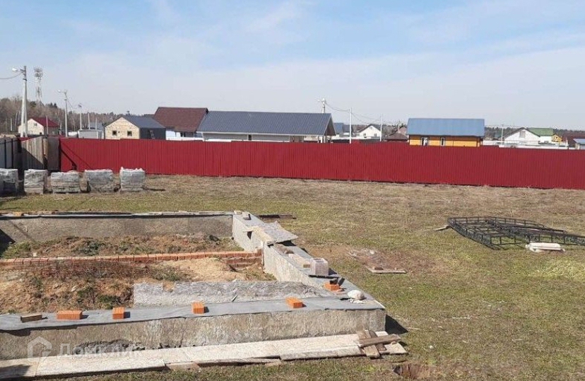 Ровный  участок с капитальным фундаментом 6*9 , на котором можно поставить дом в 100 кв. м. Колодец , подключено электричество, имеется бытовка. Забор на два въезда( парадный и для спец.техники)