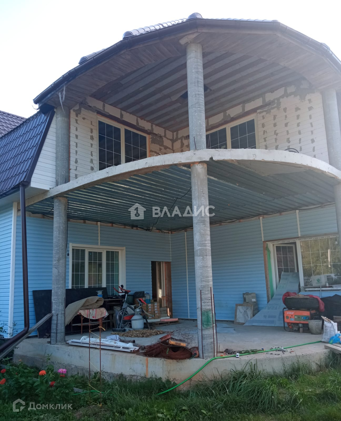 Дом из блока. С внешней стороны утеплен минватой и обшит сайдингом. Внутренние стены дома оштукатурены.
