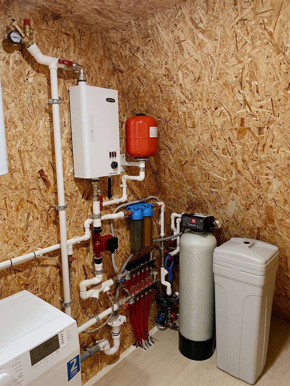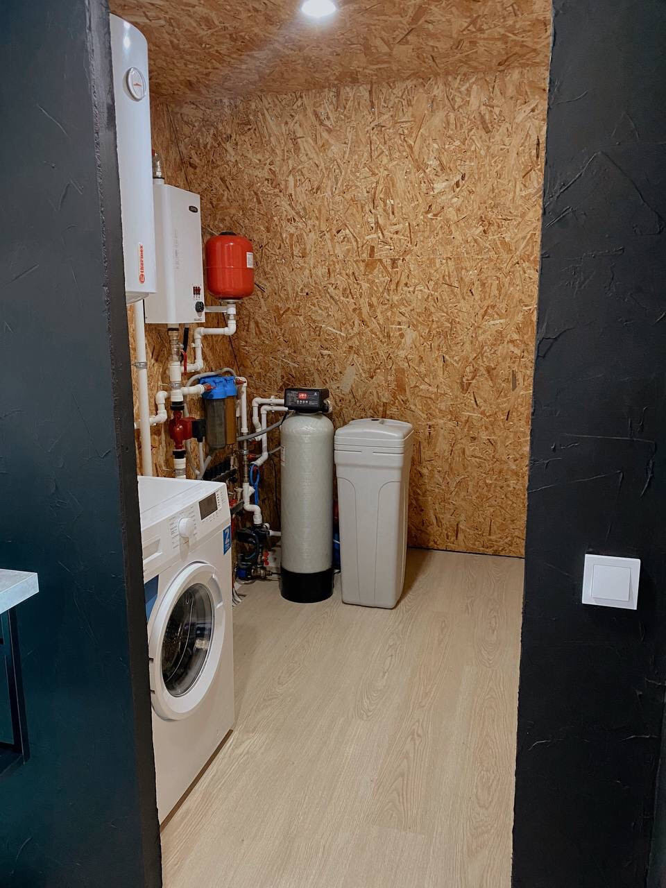 Вода из собственной скважины, а в доме установлена система очистки воды, поэтому вода мягкая, чистая, и не оставляет налёты на смесителях. Есть полноценная система отопления водными полами, что позволяет жить дома круглогодично. Автономная канализация (септик) на 4 человека. В дом заведено электричество 15кВт, выполнена скрытая электропроводка.