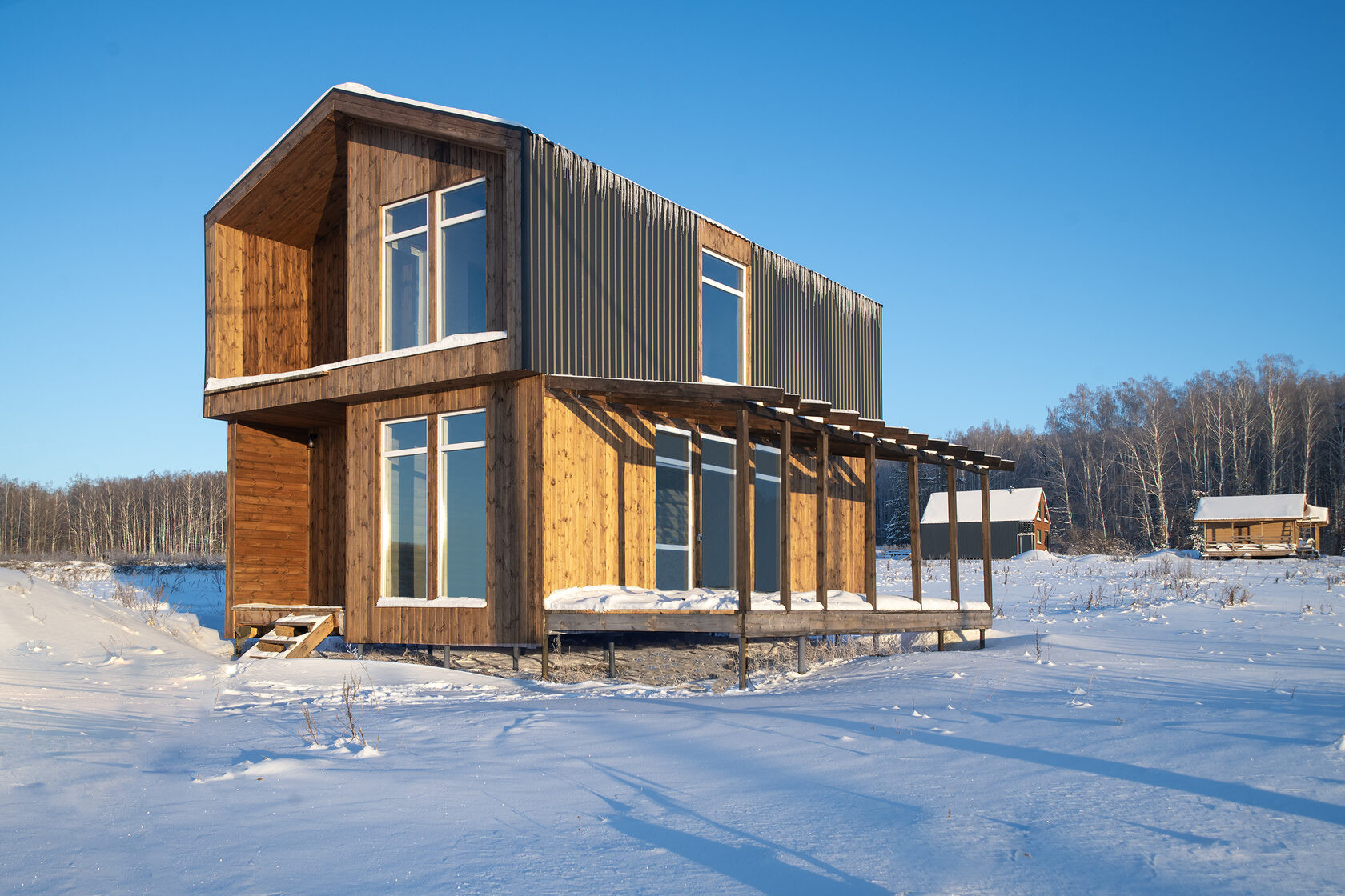 - Поселок новый, с концепцией единого стиля в окружении смешанного леса;