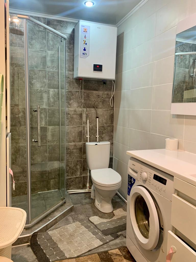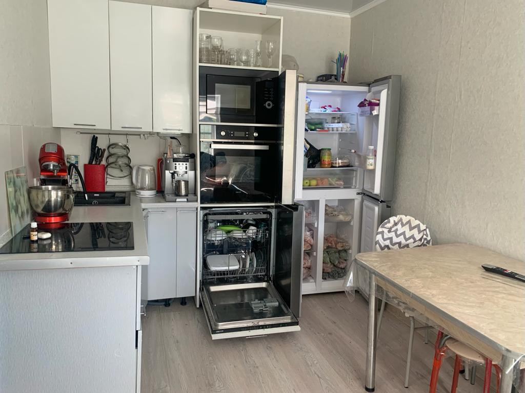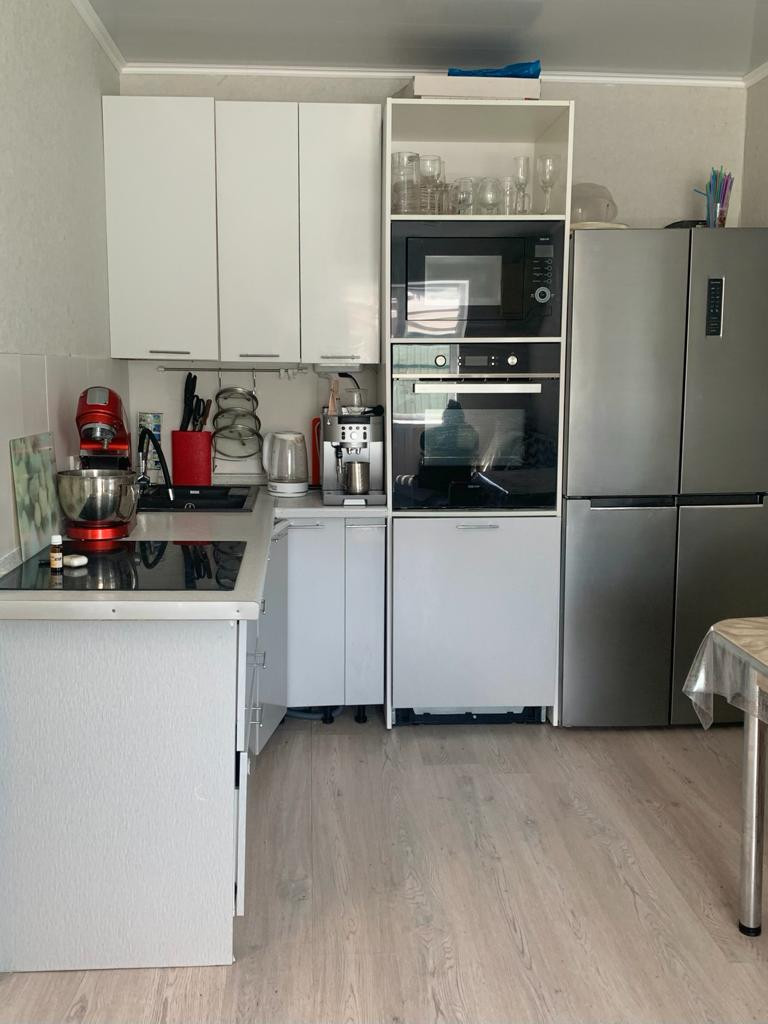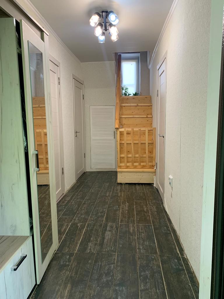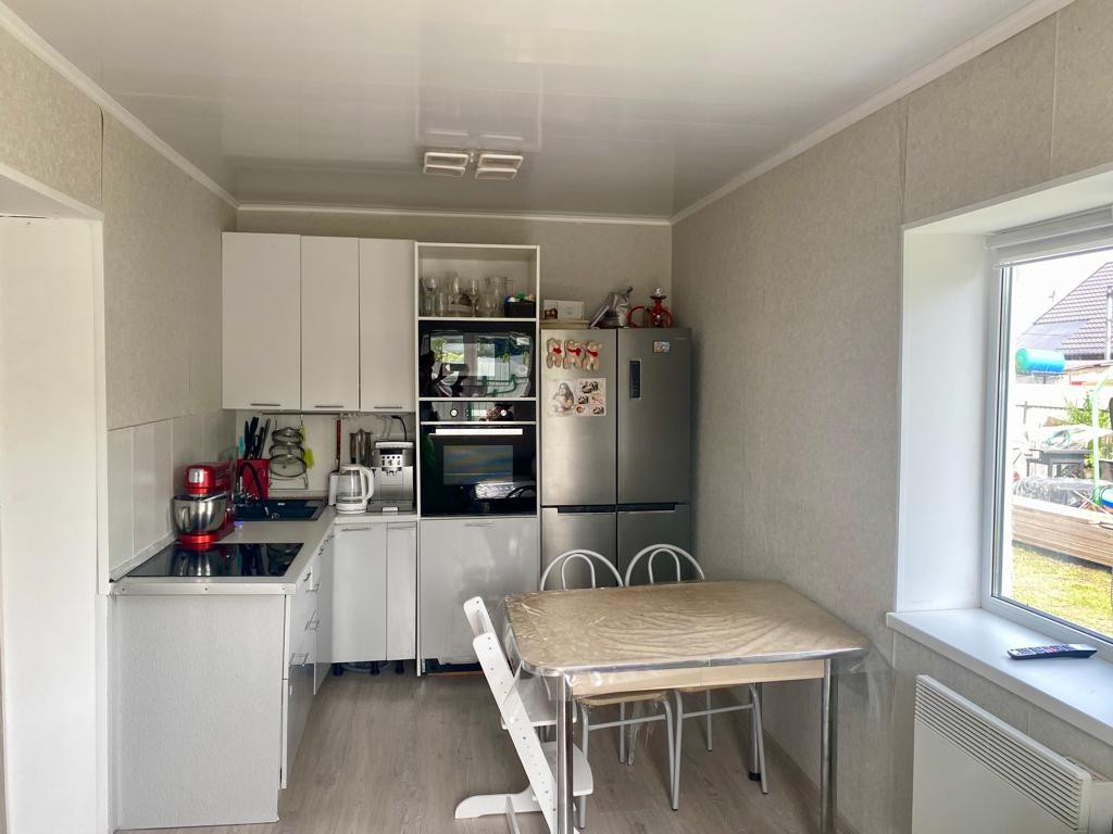 Первый этаж дома занимают кухня-гостиная, спальня и санузел. Отделка «под ключ», большая часть техники и мебели остаётся. Тёплый пол в санузле и в прихожей. Санузел с душевой ширмой.