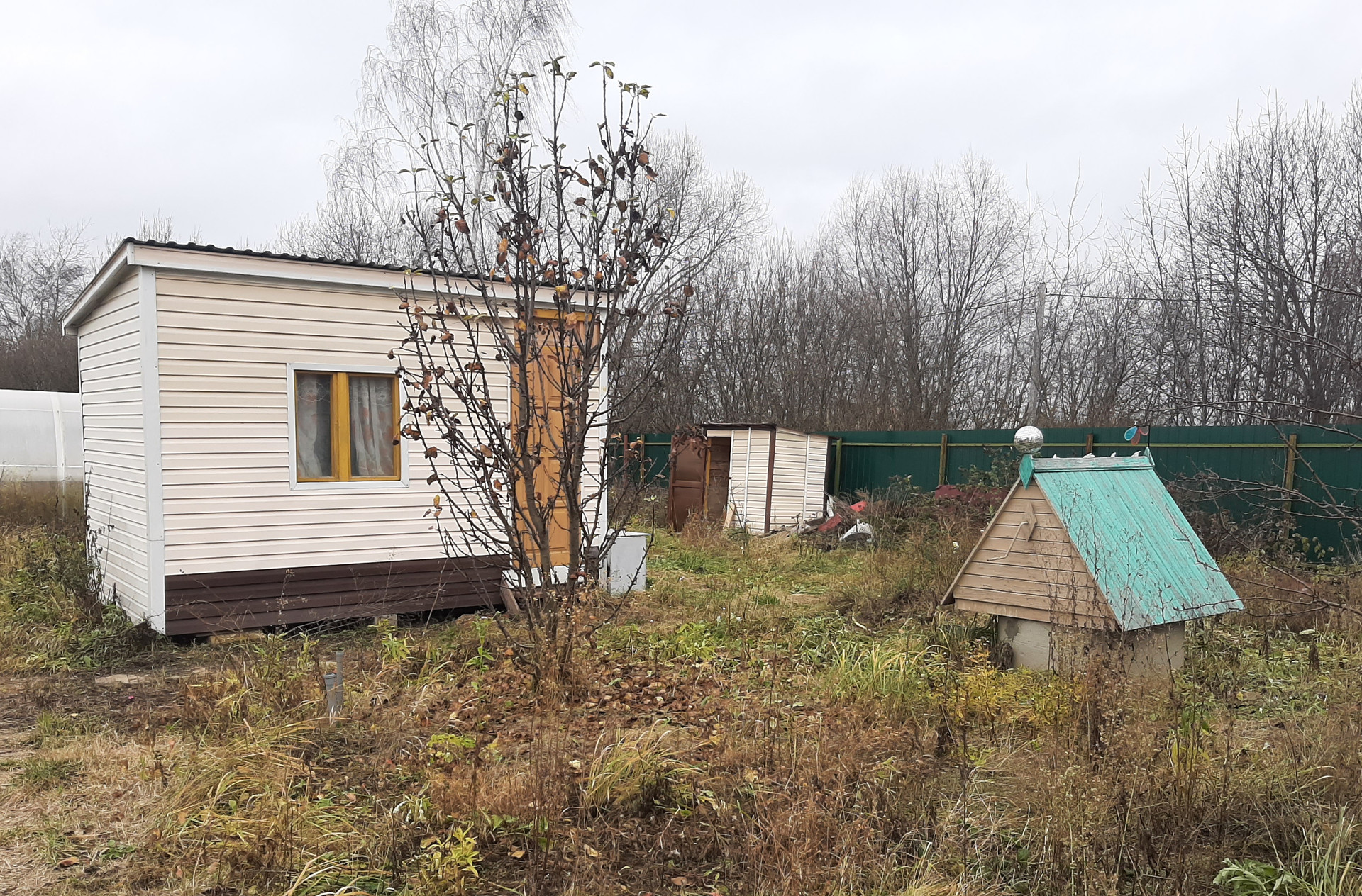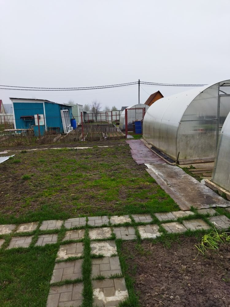 Участок ровный, правильной формы, огорожен забором. На участке расположены: уличный туалет,​ 2 теплицы, хоз.блок. Также на участке растут плодовые деревья и кустарники.